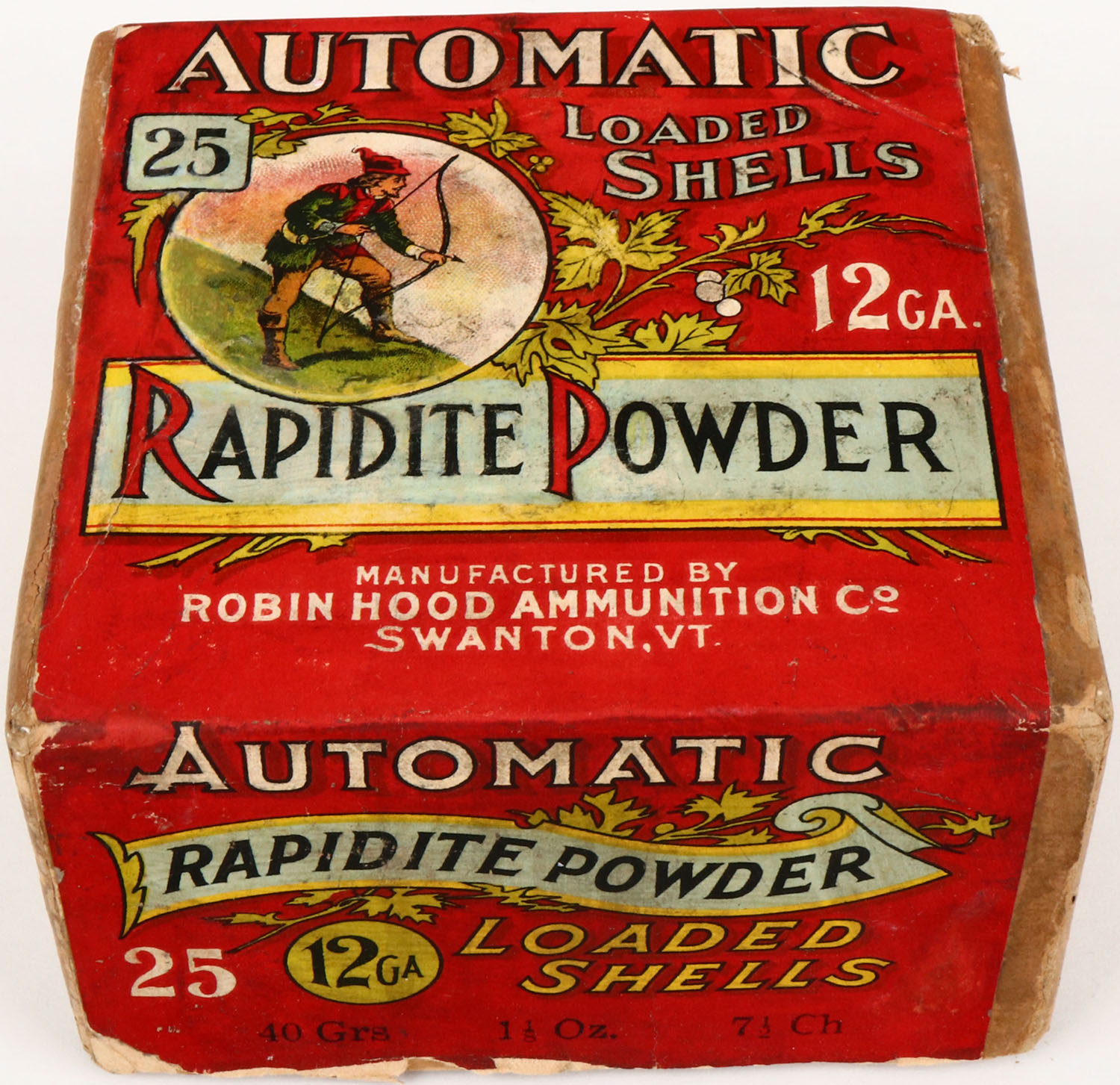 | ULTRA RARE Robin Hood, AUTOMATIC, RAPIDITE POWDER, 12ga., 2pc., ...