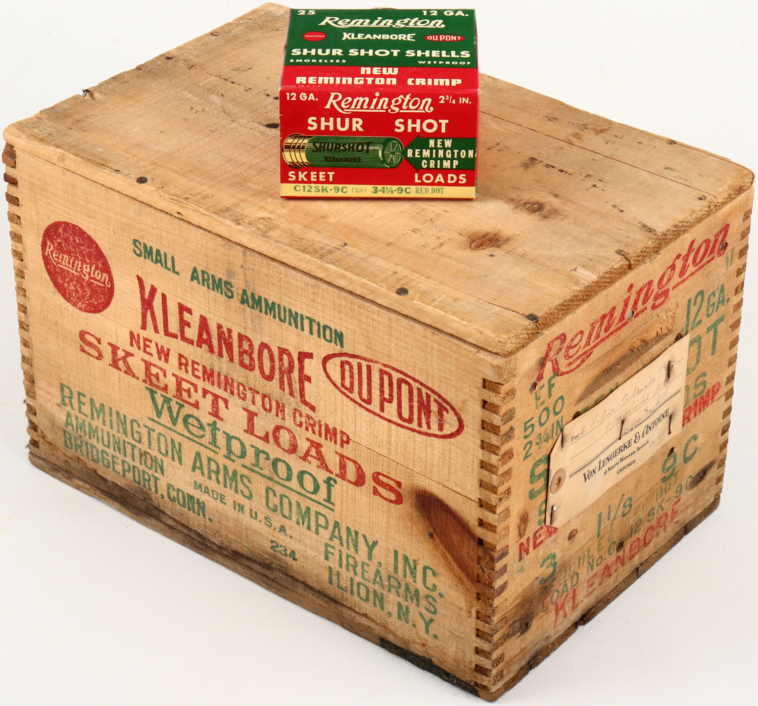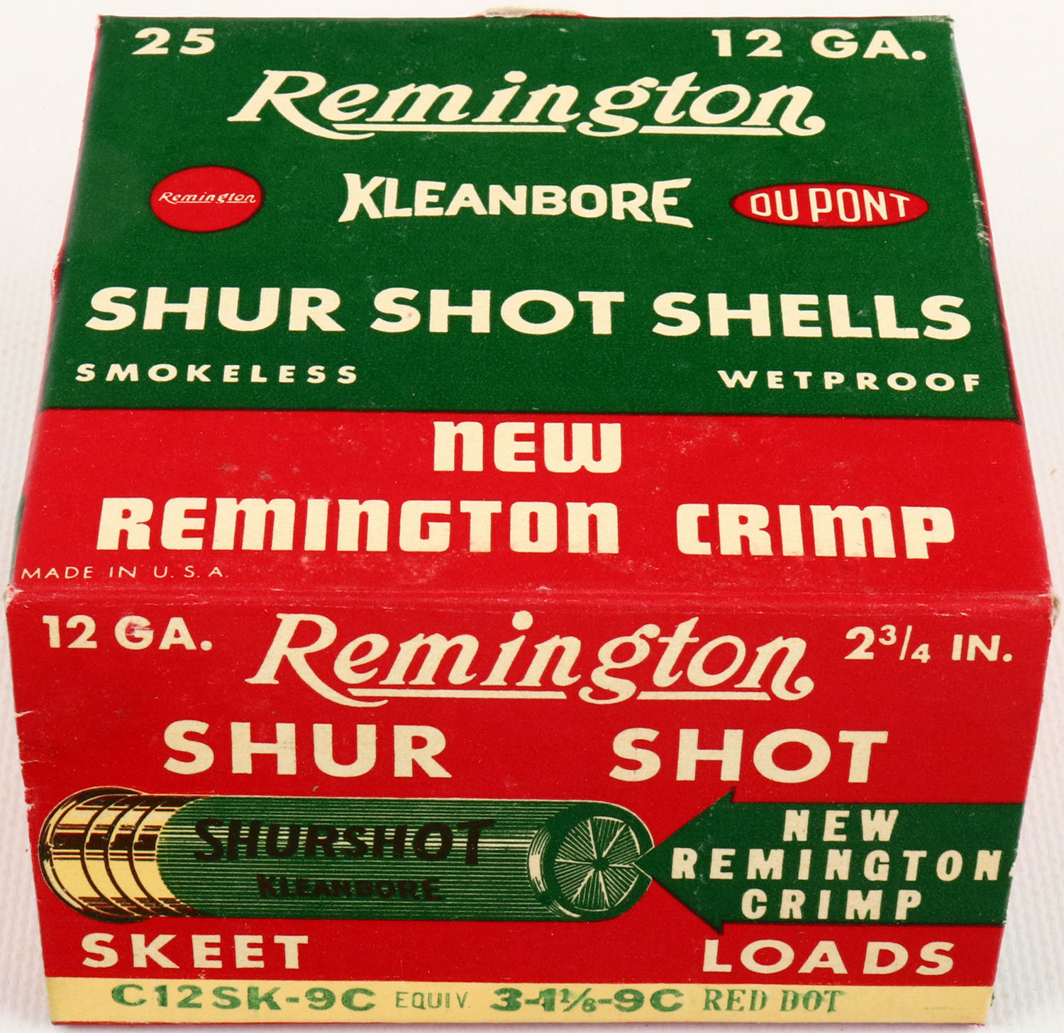 FULL CASE OF Remington, Kleanbore Shur Shot Shells with insert & has Rare VLA Label on case, 12ga., SKEET LOADS, 1pc., Full, shot size 9C Red Dot, red and green box, 2 3/4'', case is excellent, boxes are excellent, shells are excellent. Grade: Excellent ++ - Value: 300 to 600