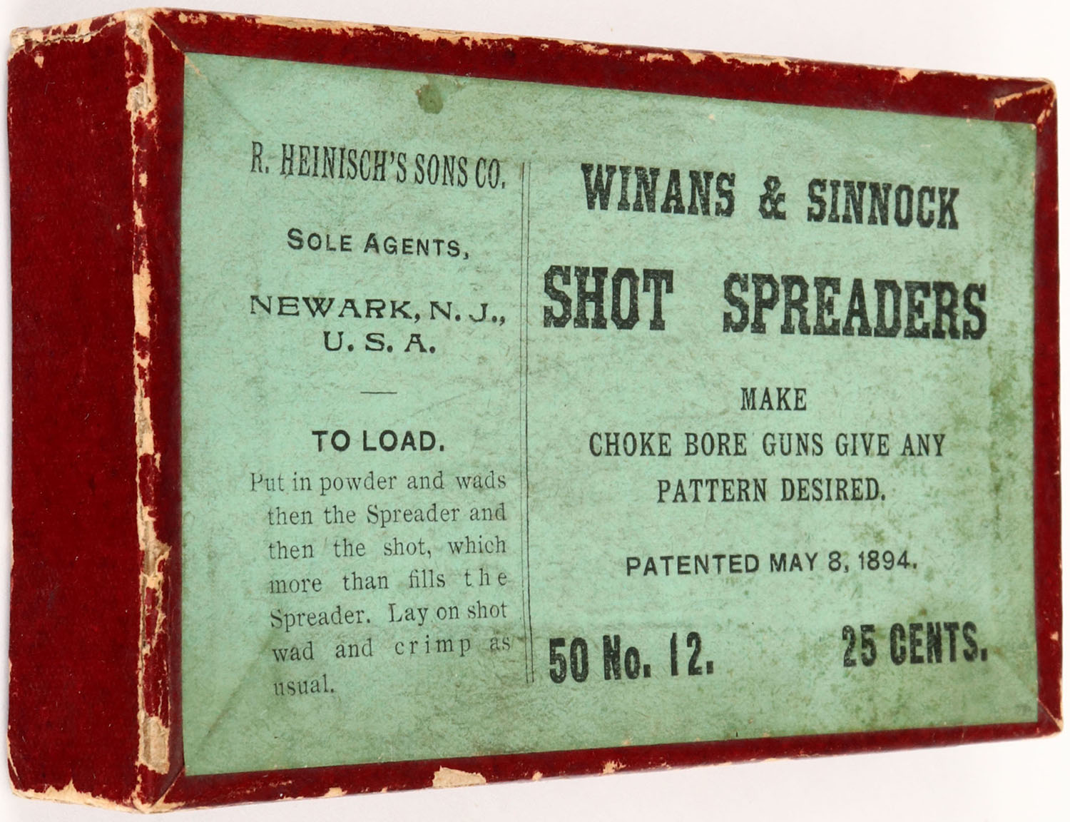 R. Heinisch's Sons CO., Winans & Sinnock with insert. Shot Spreaders 50 count, box is solid with edge wear and great label Grade: Excellent - Value: 10 to 50