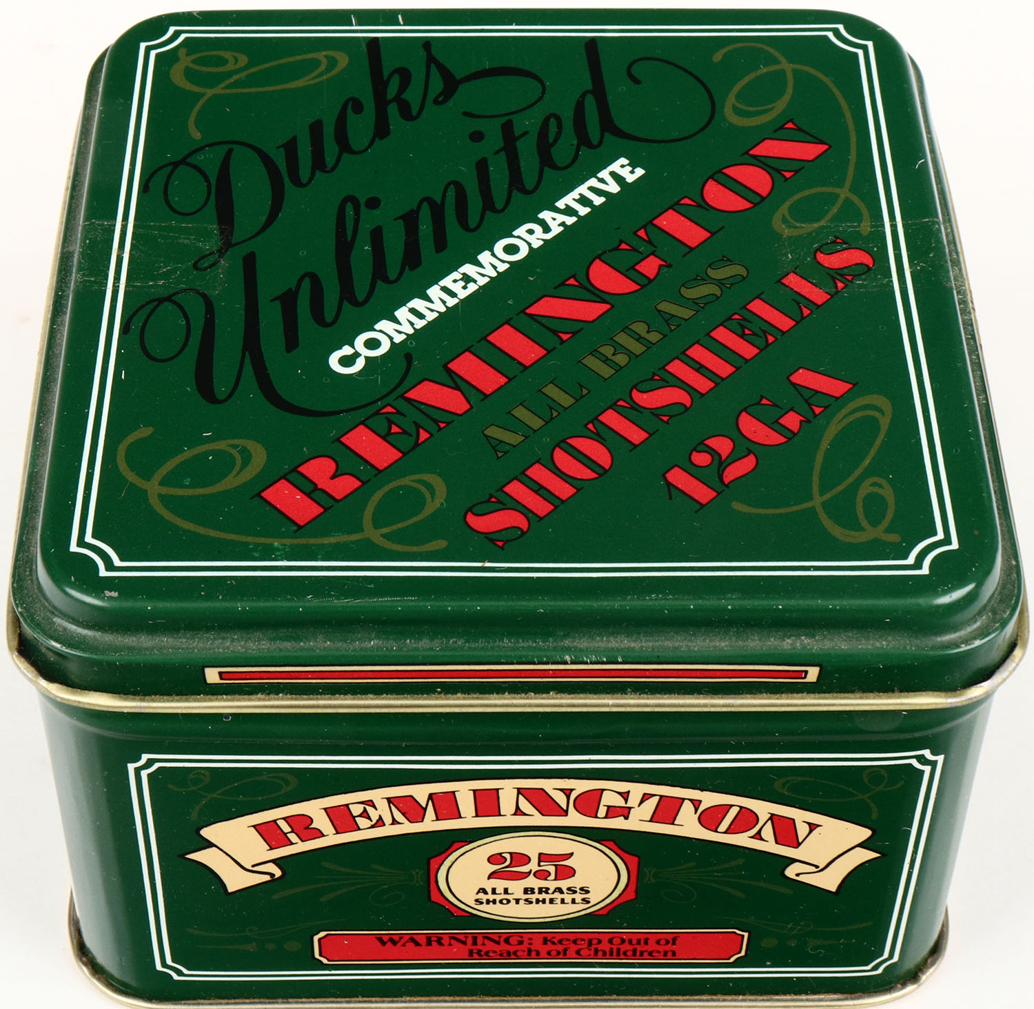 Duck Unlimited Commemorative Remington All Brass Shotshells 12ga., Full, Factory Insert, metal tin has excellent graphics, shells are MINTY. Grade: Excellent ++ - Value: 30 to 100