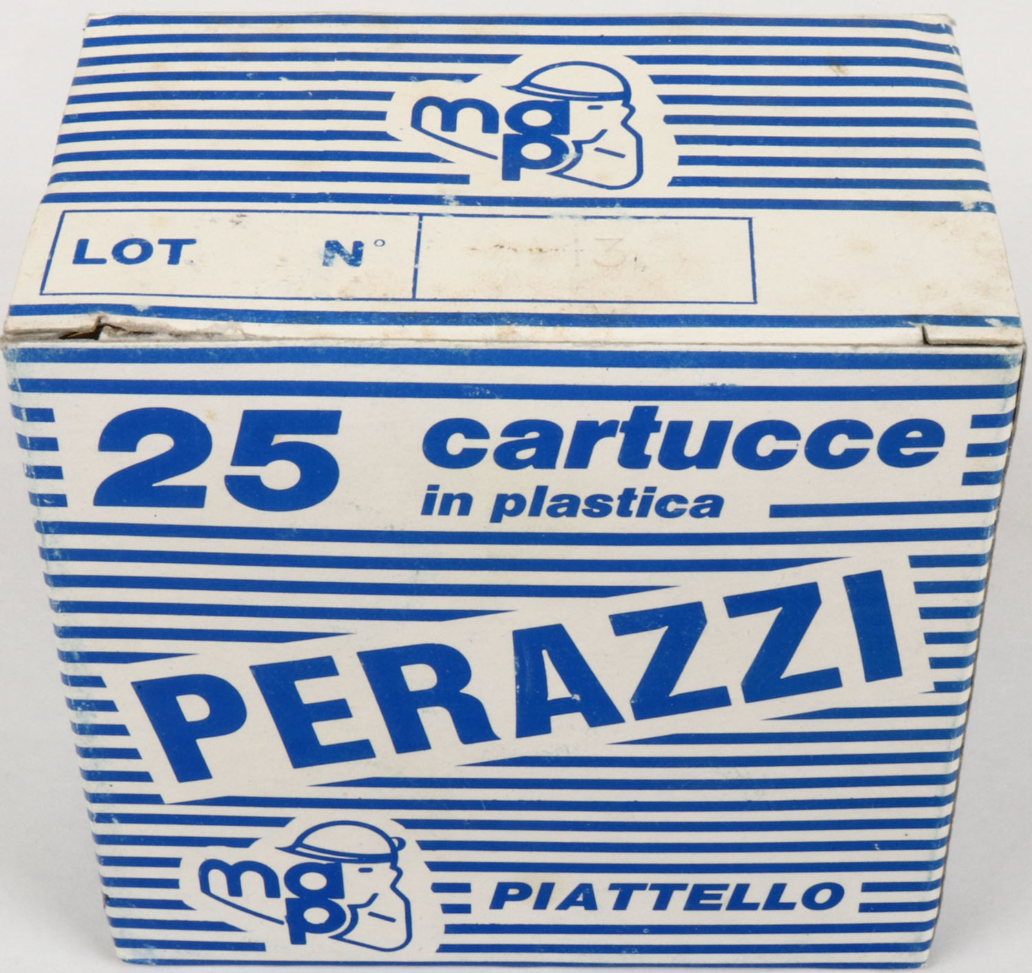 Perazzi, 12ga., 1pc., FULL, shot size 7 1/2, box is solid, Shells are excellent. Grade: Excellent + - Value: 8 to 20