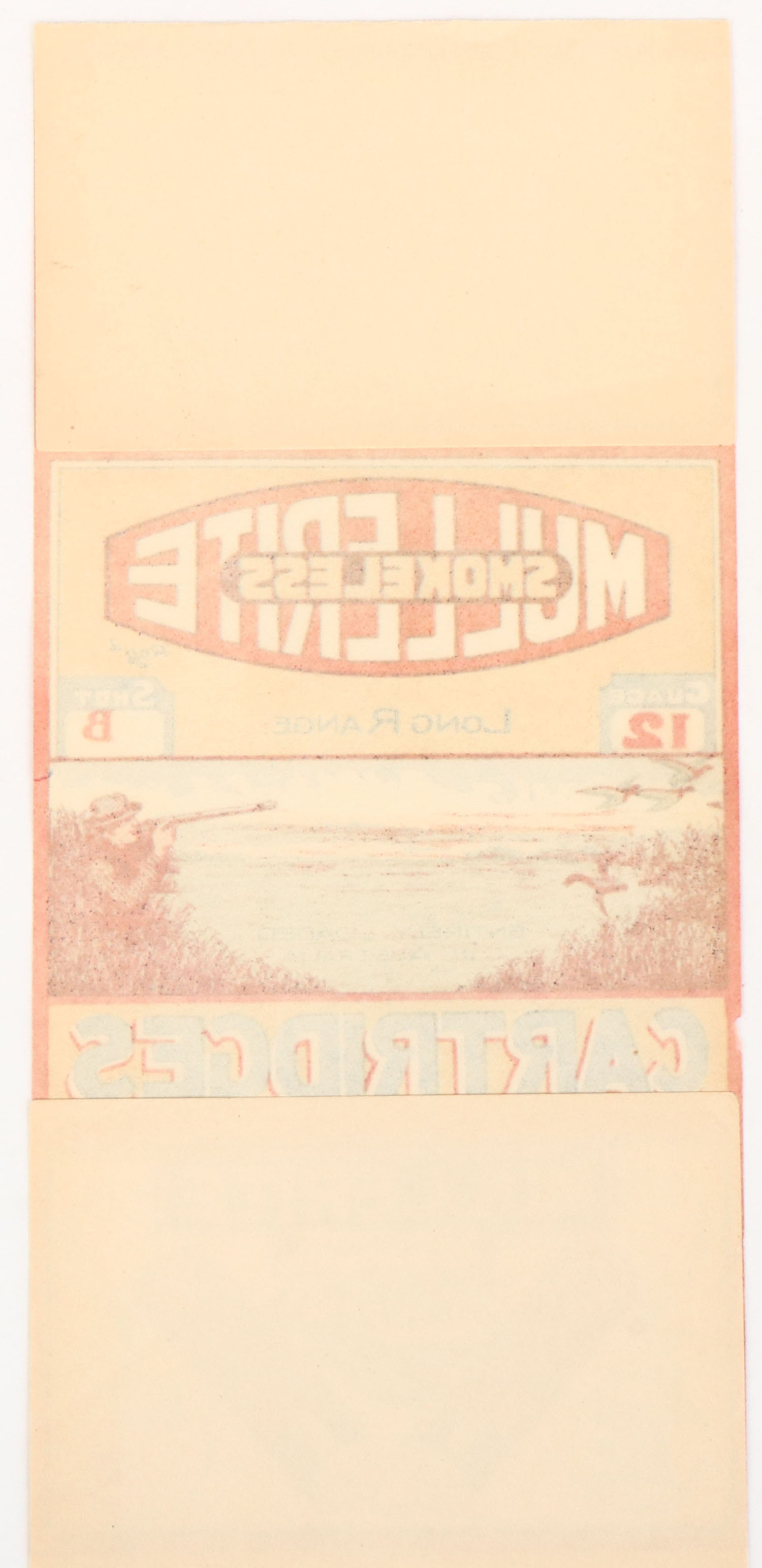 Mullerite, 12ga., 2pc. Label, shot size B, Label is Minty. Grade: Excellent ++ - Value: 10 to 50