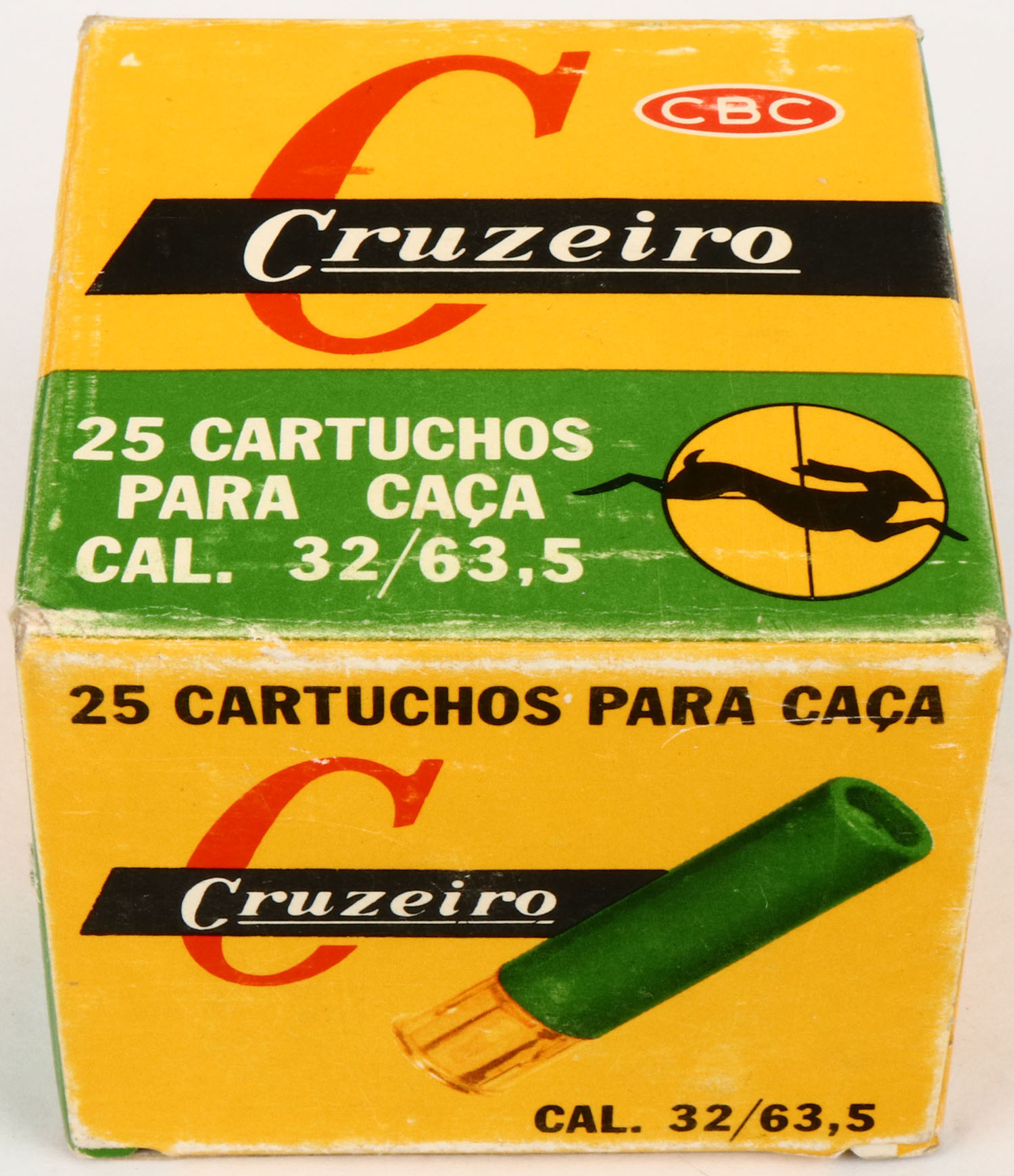 Cruzeiro, 32ga., 1pc., FULL, shot size 7 1/2, box is solid, Shells are excellent. Grade: Excellent + - Value: 10 to 40