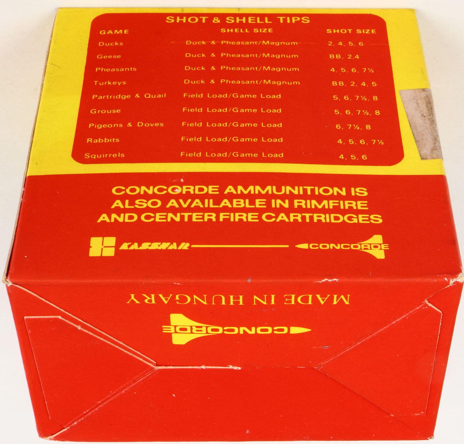 Concorde, Game Load, 16ga., 1pc., FULL, shot size 7 1/2, box is solid, Shells are excellent. Grade: Excellent + - Value: 8 to 20