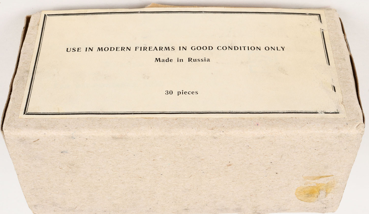Russian, Iiatpoh Oxothnpnn, 12ga., 1pc., Full, shot size BBB, copper washed steel shells, Shells are very good. Grade: Excellent + - Value: 8 to 20