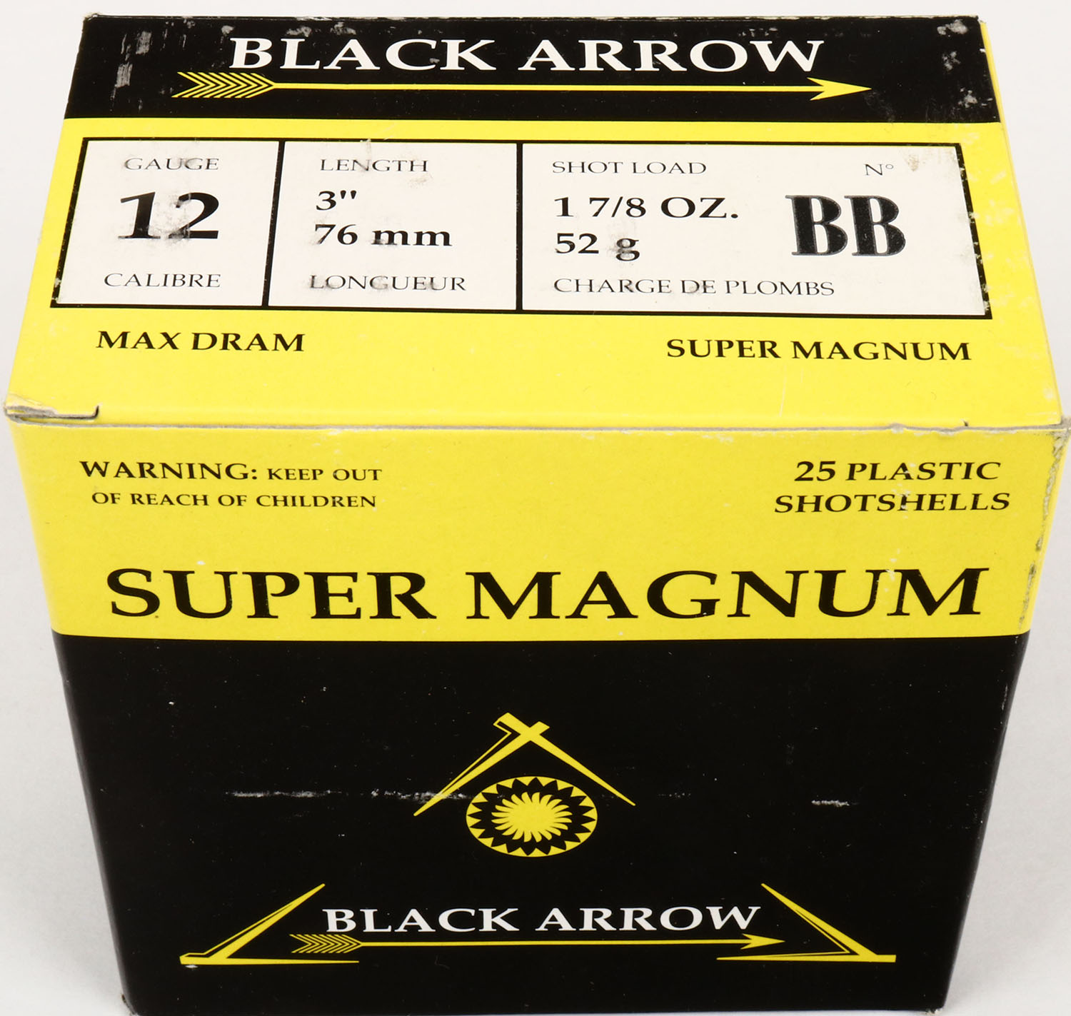 Black Arrow, 12ga., 1pc., FULL, shot size Super Magnum BB, box is solid, Shells are excellent. Grade: Excellent + - Value: 8 to 20