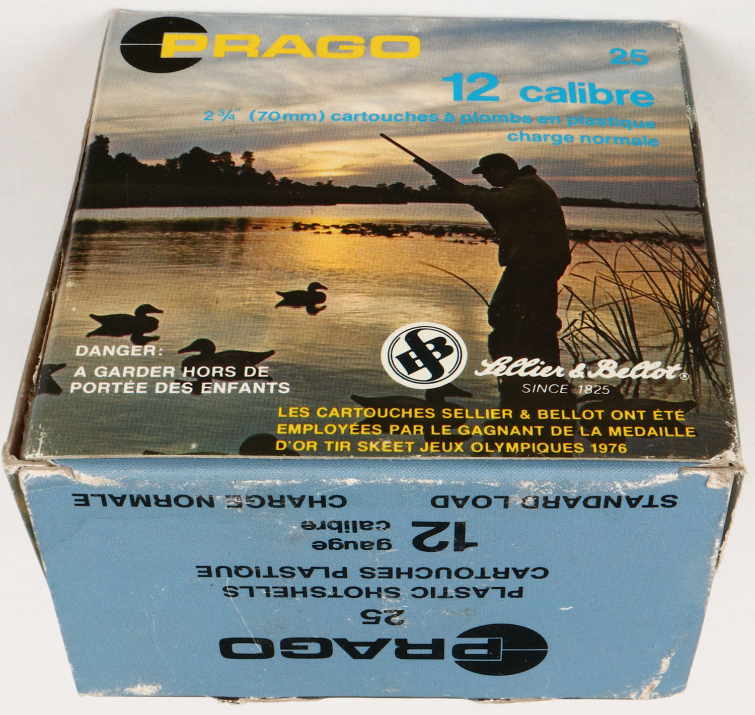 Sellier & Bellot, Prago, 12ga., 1pc., FULL, shot size 7 1/2, box is solid, Shells are excellent. Grade: Excellent + - Value: 8 to 20