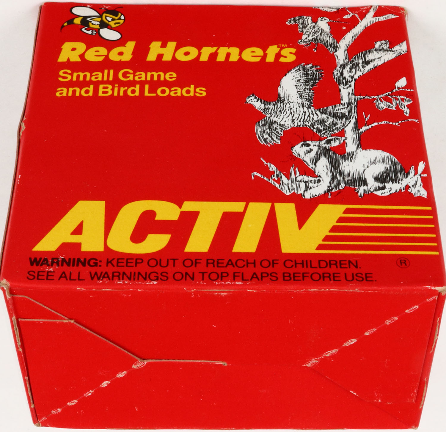 Activ, Red Hornets, 12ga., 1pc., FULL, shot size 8, box is solid, Shells are excellent. Grade: Excellent + - Value: 8 to 20