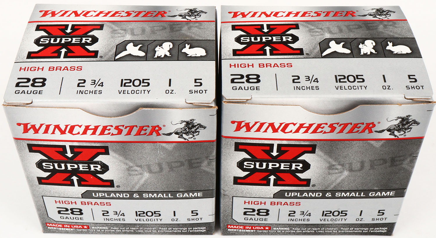 Lot of 2 Winchester, 28ga., 1pc., FULL, shot size 5, boxes are solid, Shells are excellent. Grade: Excellent + - Value: 10 to 40