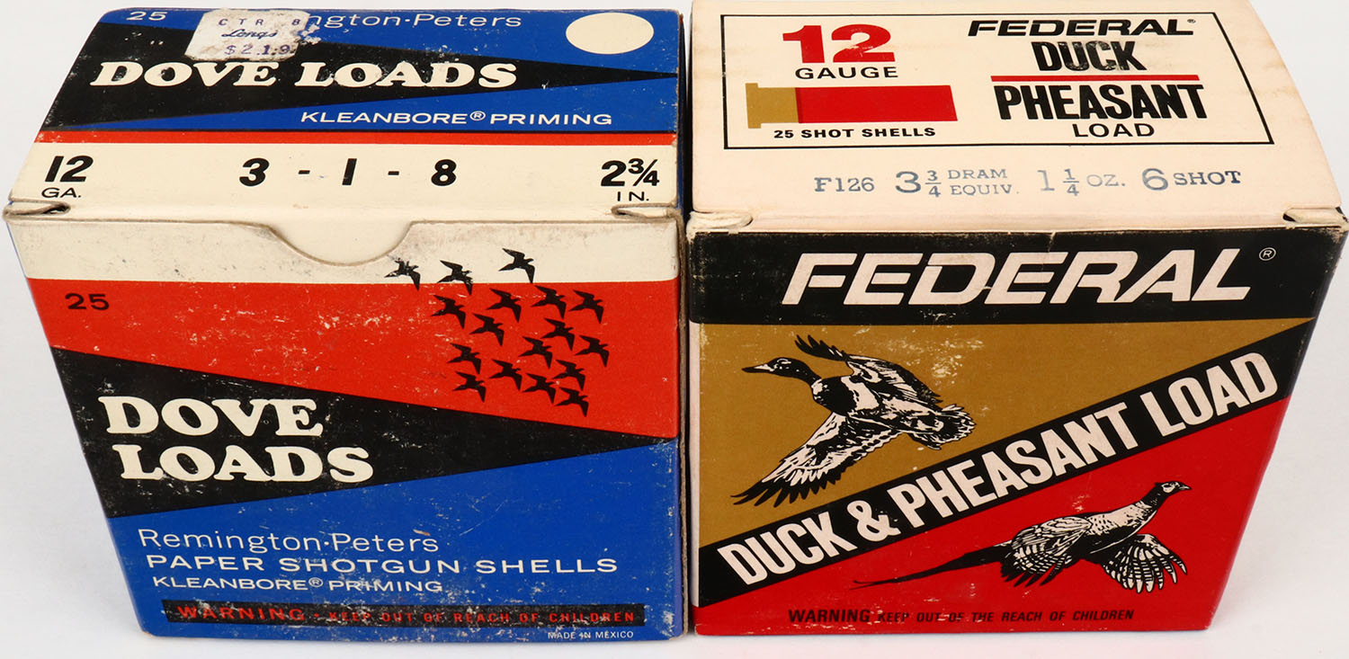 Lot of 2 Federal/Rem-Peters, 12ga., 1pc., FULL, shot size 8 & 6, boxes are solid, Shells are excellent. Grade: Excellent + - Value: 10 to 30