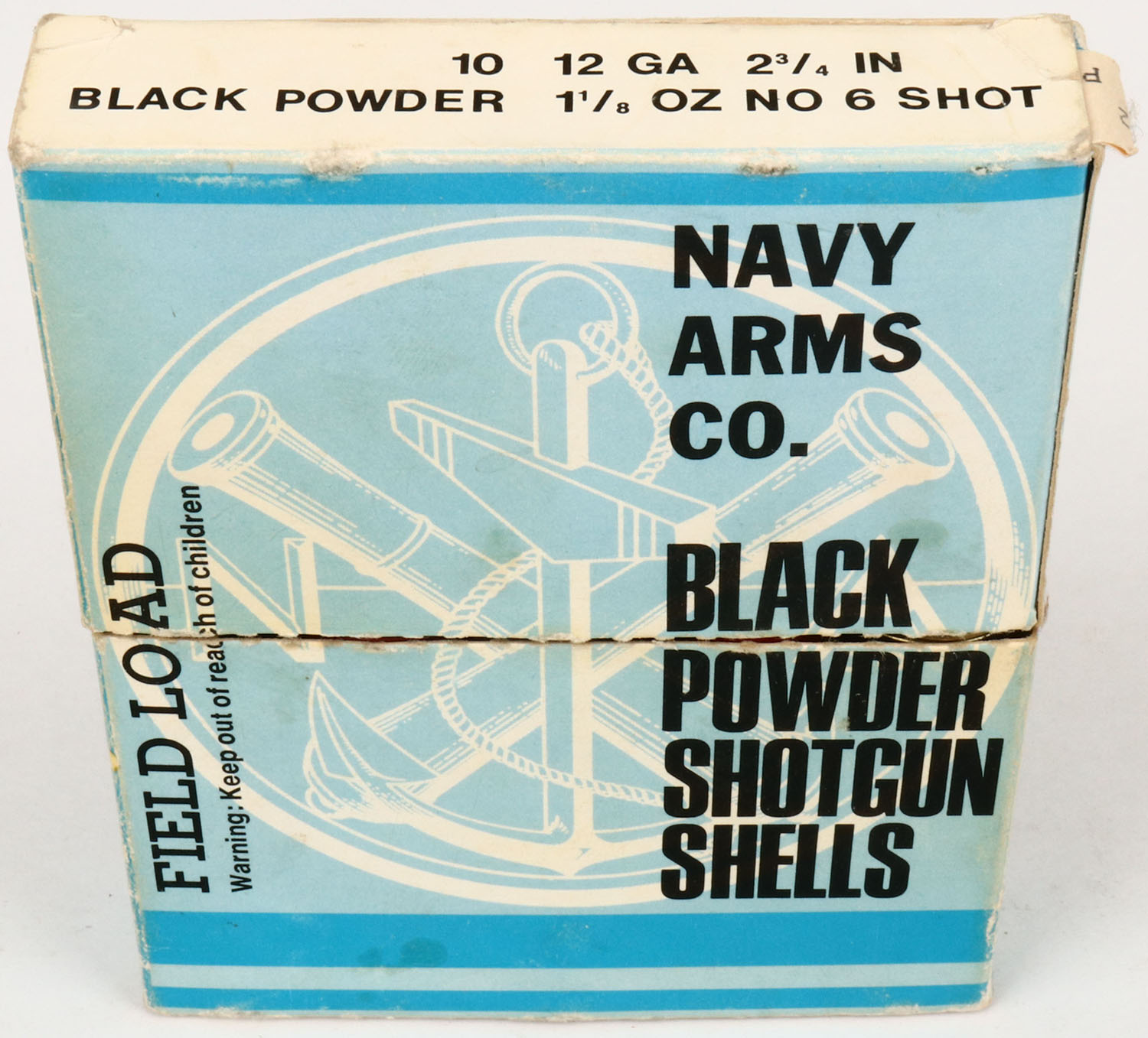 Lot of 2 Navy Arms, 12ga., 1pc., Partial, shot size 6, boxes are solid, Shells are excellent. Grade: Excellent + - Value: 6 to 10