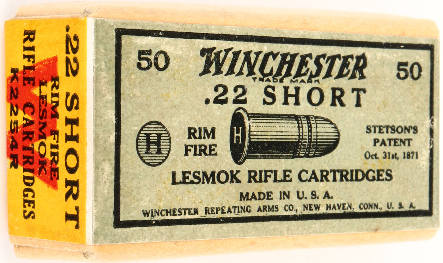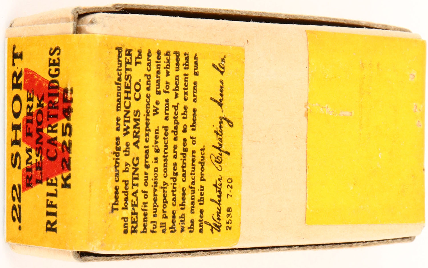 | Winchester, .22 Short Lesmok Rifle Cartridges, 1923 issue, RR: W...