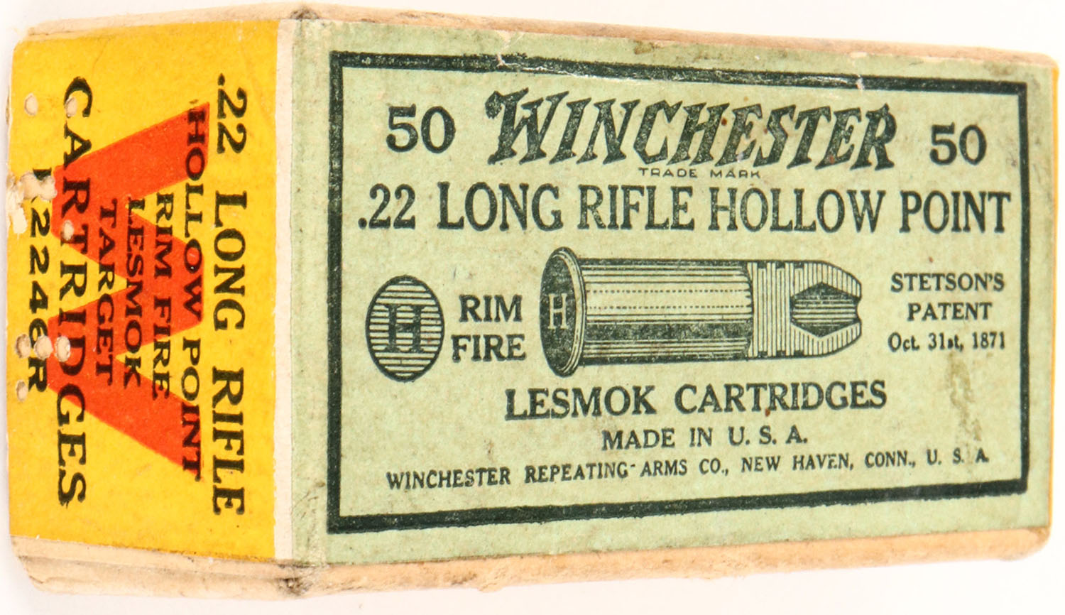 | Winchester, .22 Long Rifle Hollow Point, Lesmok Cartridges, RR: ...