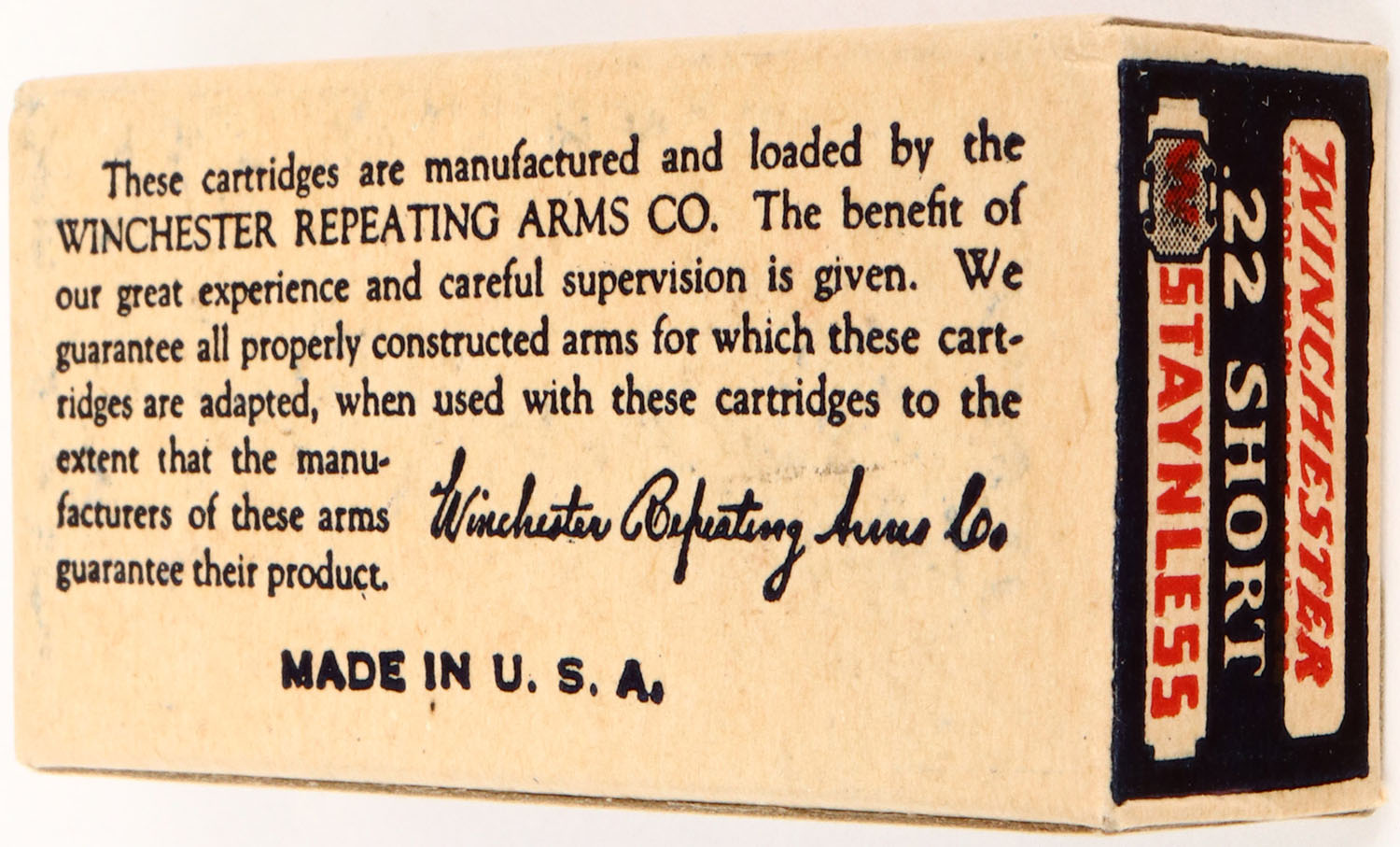 | Winchester, Staynless, .22 Short, RHWeb: WRA-12B S-1b, Full, 1pc...