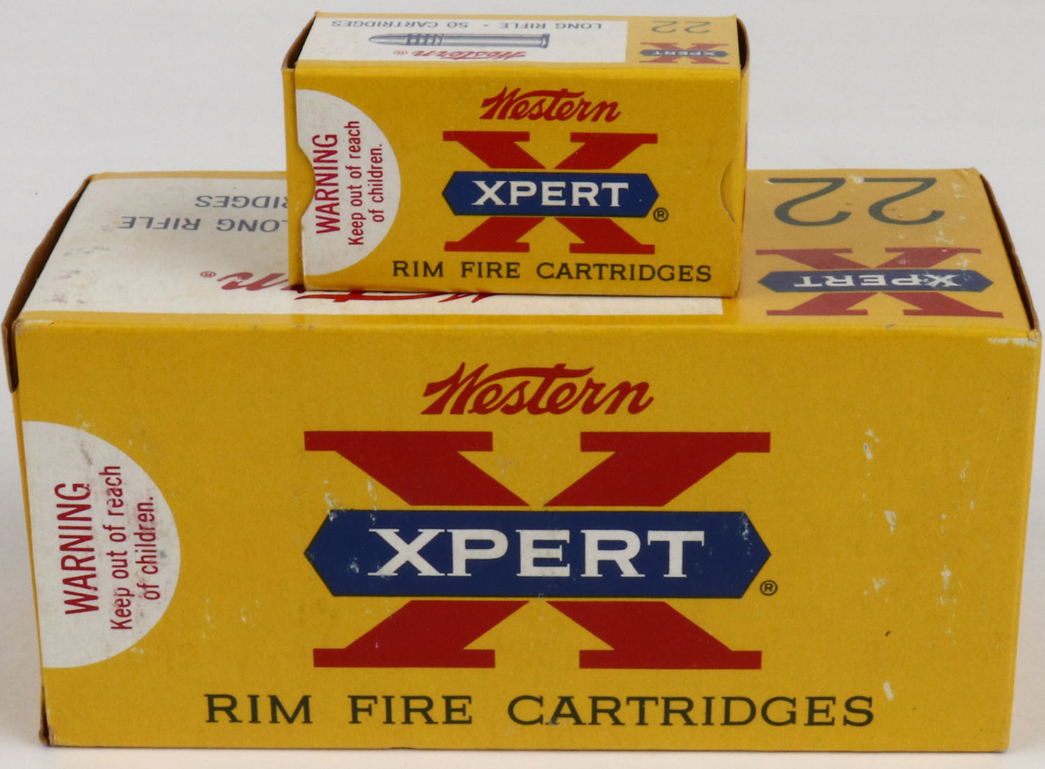 Western, Xpert, .22 Long Rifle, Special Lubricant, Full 500rds. 1pc. Yellow white & red brick, brick is near mint with minty color, only very minor shelf & corner wear, corners are mostly sharp, edges are crisp, end flaps are rigid, inside boxes are minty. Grade: Excellent ++ - Value: 50 to 150