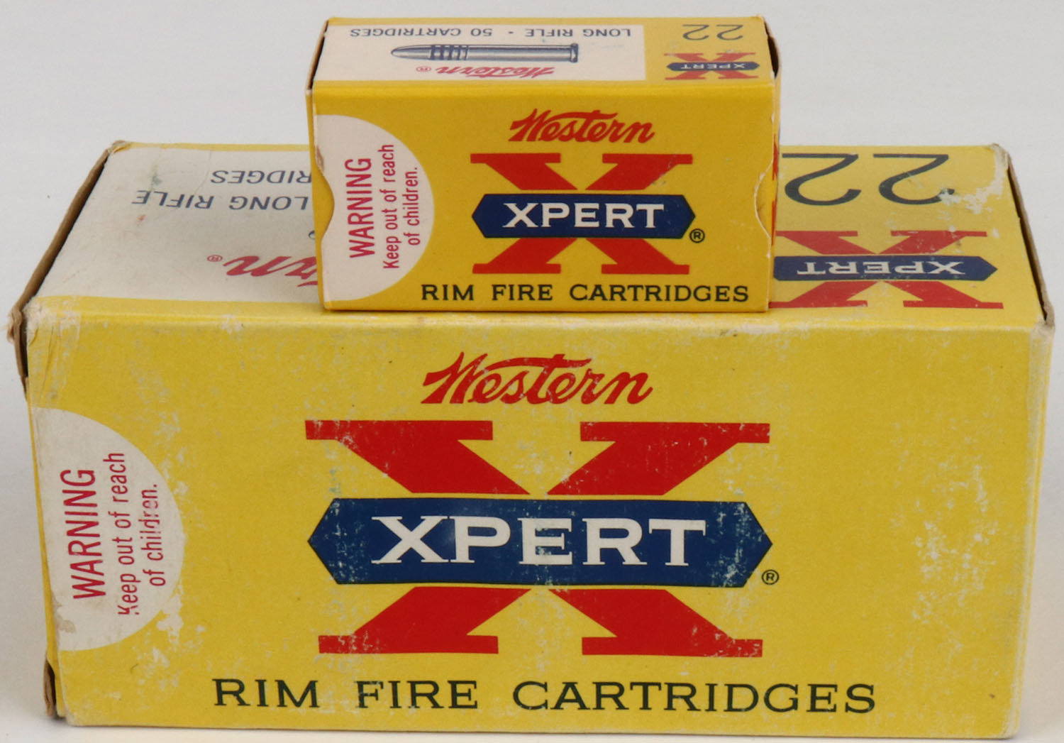 Western, Xpert, .22 Long Rifle, Special Lubricant, Full 500rds. 1pc. Yellow white & red brick, brick is solid with excellent color, very minor age soiling & shelf wear, minor corner wear, edges are mostly crisp, end flaps are rigid, inside boxes are excellent to minty. Grade: Excellent ++ - Value: 50 to 150