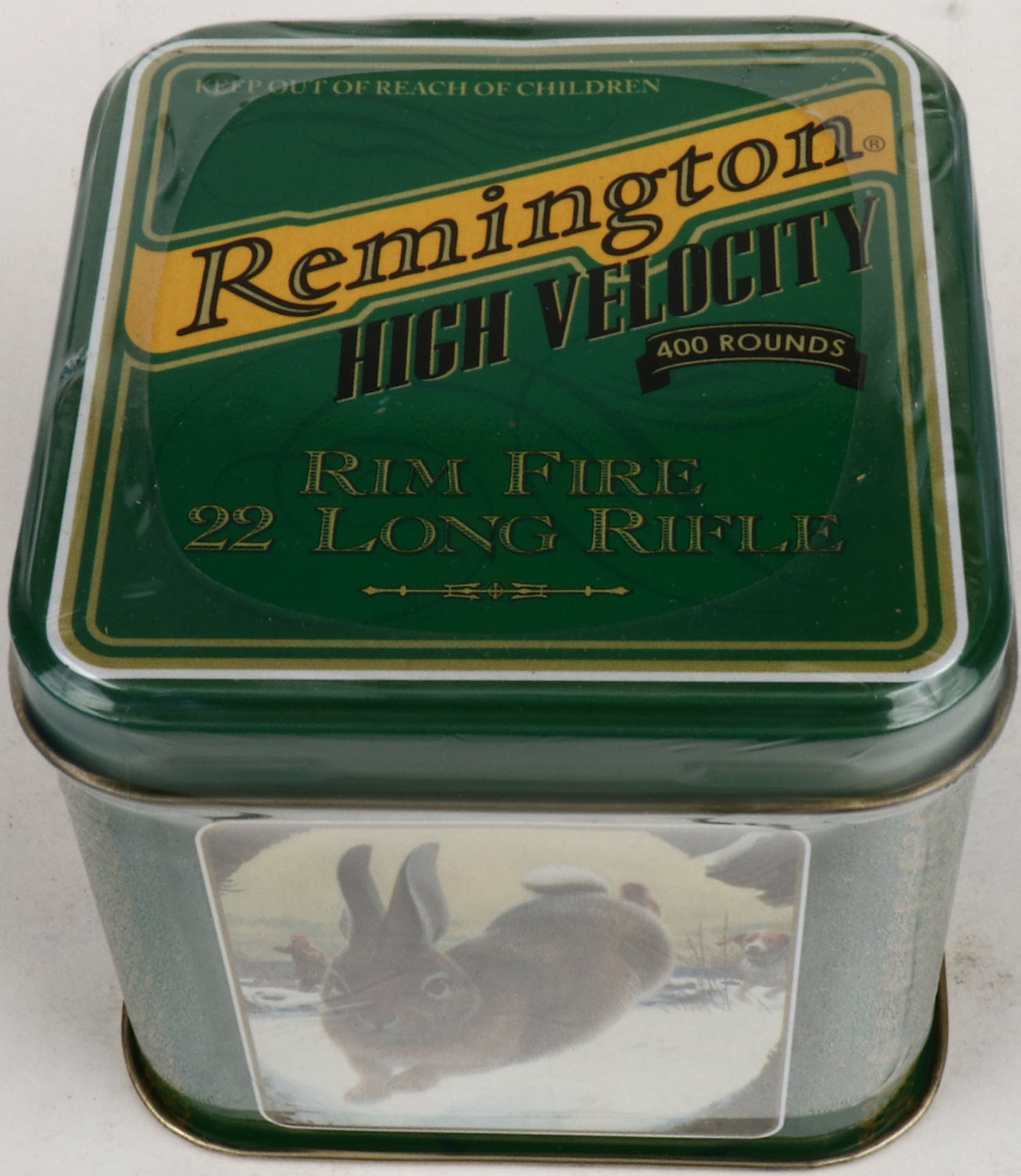 Remington, Limited Edition Remington Artwork Collectors Tin, High Velocity, .22 Long Rifle, 2pc., Full & Sealed, 400rds. tin, features 3 classic pieces of Remington artwork. Grade: Mint - Value: 50 to 150