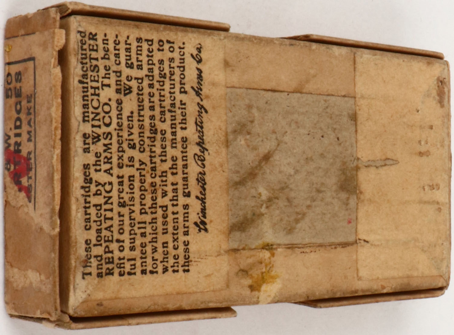 Winchester, .32 Smith & Wesson Blank Cartridges, Center Fire, Partial 25rds., 2pc. Buff box with buff label, box is solid with very good color, age soiling, seam splits on all corners of lid, some edge wear, labels are intact. (129) Grade: Very Good + - Value: 2 to 20
