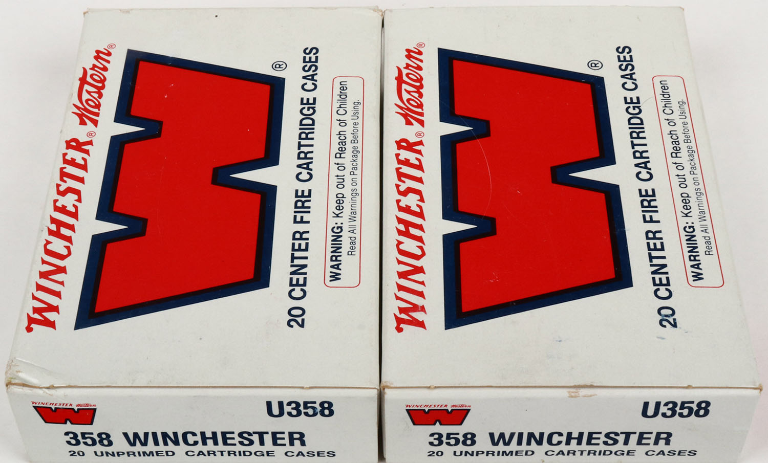 Winchester-Western, Lot of (2), .358 Winchester, Unprimed Cases, boxes are full, cases are excellent. Grade: Excellent ++ - Value: 10 to 60