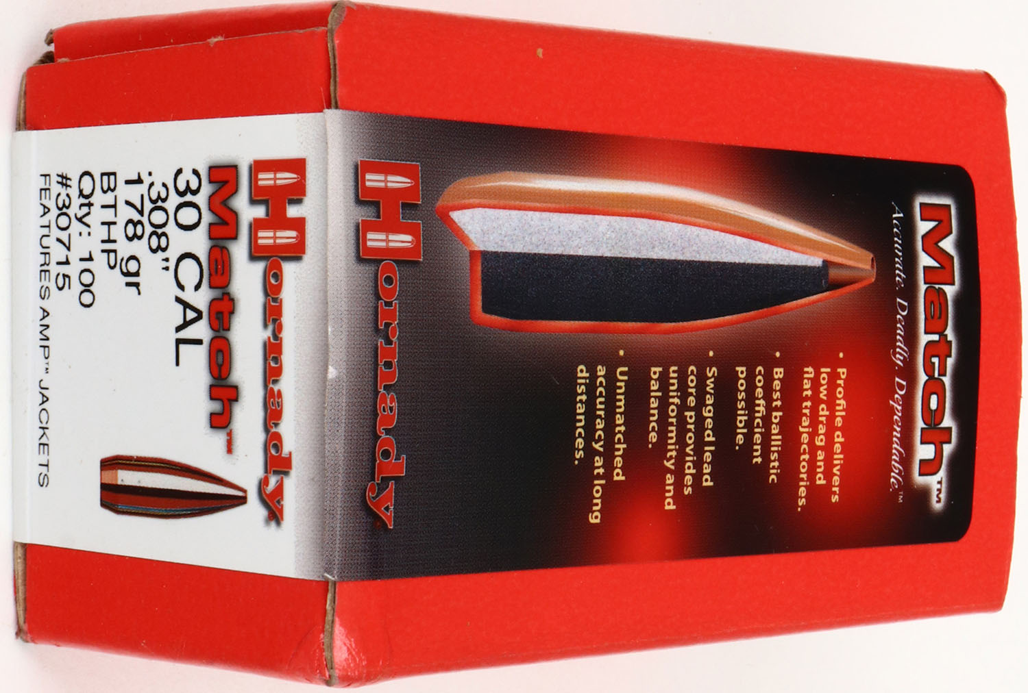 | Hornady, Match, .30 Cal., 178 Gr. BTHP, FULL, 1pc. Red box with ...