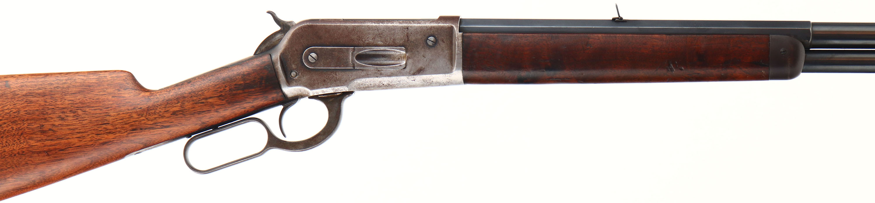 SPECIAL ORDER Winchester, Model 1886, (MATTED BARREL), CAL: 40-82 WCF, MFG: 1918, SN: 156140, Lever Action Rifle, 26'' Half octagon/half round barrel, Full mag. A special order rifle, with unique features. The orignal straight grip stocks are very good. The stock has been lightly sanded & nicely refinished, with a couple of minor spot with filler & a small toe chip that has also been filled. The original forend carries the original finish, with several minor contusions or scratches. The barrel is a special order having a rare full length matted top on the 1/2 octagon 1/2 round barrel. According to a 2007 WACA article on the subject, Winchester records indicate only 206 matted barrel 1886 rifles were produced in all calibers. The high luster metal blue finish on the barrel & mag has been nicely restored & rates 98%, with some light speckling under blue. The receiver, lever, hammer & forend cap are worn mostly gun metal gray, with a thin layer of brown patina. The sliding bolt retains a 85% of its original bright blue. Fitted with a special order two leaf folding rear sight & a small blade front sight. Bore is excellent. Ordered with a Winchester hard rubber, widow's peak, shotgun buttplate. Comes with a Cody Winchester Factory Records Letter, which simply confirms no records for this rifle are available. This rare special order rifle, with a very nice overall appearance. FFL or C&R Req. - Value: 3000 to 6000