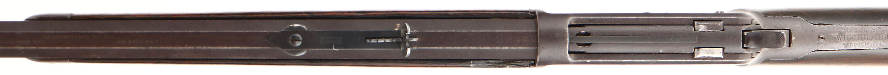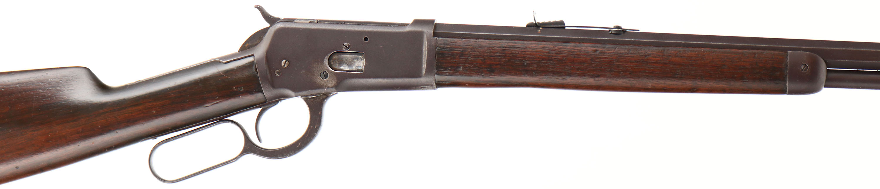Winchester, Model 1892, CAL: 32 WCF, MFG: 1892, SN: 12X410, Lever Action Rifle, 24'' Octagon barrel, Full mag. The original straight pistol grip wood stock & forend are good & solid, as sanded & refinished. They display edge chipping, contusions, scrapes & dings. The metal finish has toned entirely to an even chocolate brown patina. Barrel has been re-lined & thus the bore is excellent & bright, with crisp rifling. The barrel holds a replaced adjustable rear sight & pinched silver blade front sight. Buttstock carries a crescent metal buttplate. Smooth tight action. Should be an excellent shooter. Antique, No FFL Req. - Value: 600 to 1200