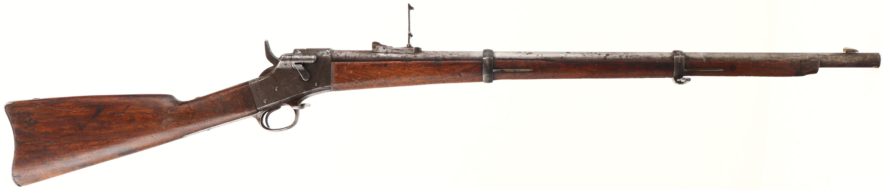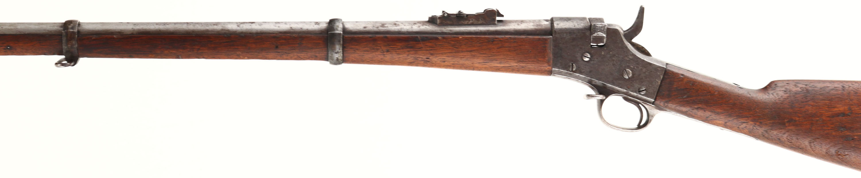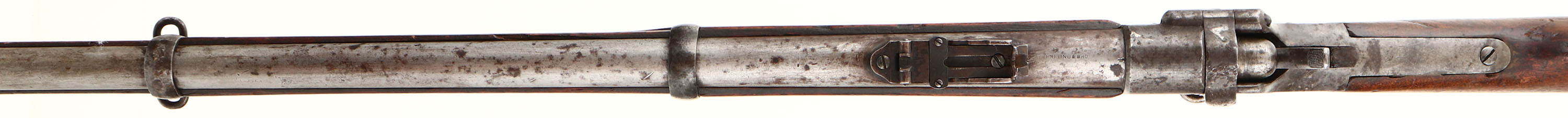 DESIRABLE! Whitney Phoenix Military Musket, Freund Marked, CAL: Appx. 50, MFG: 1870's to 80's, S/N: 3050, Single Shot Breech Load, 28 1/2'' barrel, marked ''Freund & Bro''. This Freund rifle has an unusual hinged breech, or swing gate, which also activates the ejector when fully opened. Frank & George Freund were two of the finer gunsmiths of the Old West, but were often overlooked in history, due to the fact that they usually concentrated on making improvements to existing rifles, rather than manufacturing their own complete firearms. Frank was the first one to emigrate to the U.S. in 1857, originally working for E. Remington & Sons & continued to work for them until the Civil War, when he enlisted in the Union Army. George joined his brother in 1866 as a gunsmith. In the late 1860's, the Freund Brothers moved out West, fixing firearms along the way for frontiersmen & buffalo hunters. Eventually, finding themselves moving along with the railroad construction gangs. They established ''branches'' in 10 different rail cities & became well recognized for repairing & improving all sorts of frontier firearms. After the railway was completed, the Freund Brothers had to find a place to settle & by 1870 they had made their way to Cheyenne, WY where they set up a branch. They then headed south to Denver, CO, where they opened a shop. In 1875 they sold to J.P Lower & moved back to WY. Over the next 3 years, Frank received 3 patents on improvements to the Sharps 1874 model & he went on to fully covert about 300 Sharps rifles to his improvements. This is a rare example of a Freund marked rifle. The original straight wrist wood stock is very good & solid, with added protective oils over the original finish. There are several small chips or splinter of wood missing along the upper edges of the forend, along with numerous other small contusions, scratches & scrapes. The metal finish has worn gun metal gray, with spotty areas of brown patina. The breech block is marked with S/N, top of barrel is marked, ''FREUND & BRO''. Bore is good, dark, with pitting amongst proud rifling. Simple blade front sight, tangent aperture & V-notch rear sight, marked 1 to 4 on side. Military metal buttplate, with brown patina. Sling loops. A rare western frontier rifle. Antique, No FFL Req. - Value: 2000 to 3500