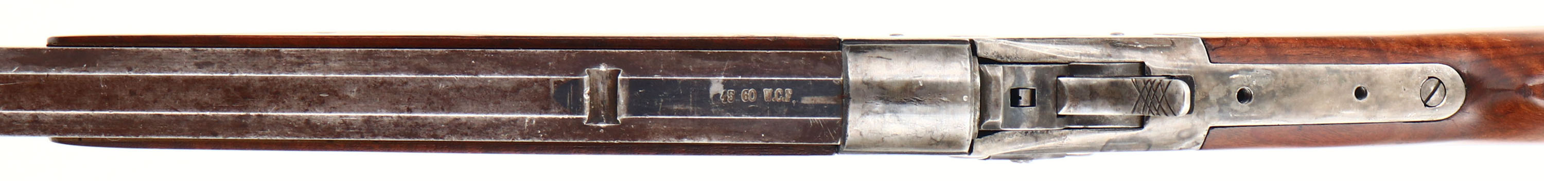 CUSTOM, Rolling Block, CAL: 40-60 WCF, MFG: N/A, SN: None Lever Action Single Shot Rolling Block Rifle, 25 1/2'' octagon barrel. This is a very unique ''Fruen'' custom built lever action rolling block rifle, which appears to be built on a Remington model 1 1/2 rolling block receiver. The lever conversion functions to simple drop the block to allow for greater access to extract the spent shell. This proved to be very useful & successful for quicker reloading, which was critical for both game hunting or to defend one self. The custom straight grip wood stocks are excellent, with very nice wavy grain & excellent finish. There is a tight 1'' hairline crack on the right side of wrist, along with other minor contusions & scrapes. The barrel carries no makers address other than the 45-60 WCF caliber marking. The metal finish on the barrel has toned to a chocolate brown patina, with worn areas being gun metal gray & with remnants of blue in protected areas. The receiver was likely case-colored at one time, but currently carries the thin remains of added finish. Bore is excellent & bright, with crisp rifling. The barrel has a open rear dovetail & a hooded front sight. The upper tang is tapped, with two open screw holes from a previously mounted tang sight. There is a hickory cleaning rod secured within the forend & under the barrel with two dovetailed retaining loops. Buttstock carries a deep crescent metal buttplate, with long upper tang. A unique & nicely built custom lever rolling block rifle. FFL or C&R Req - Value: 1000 to 2000