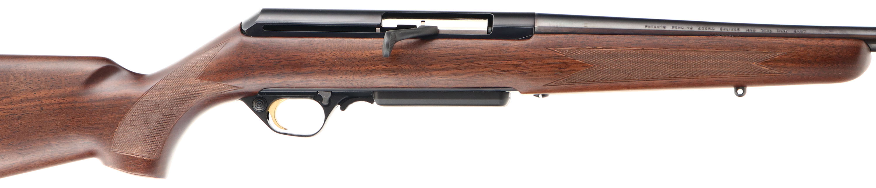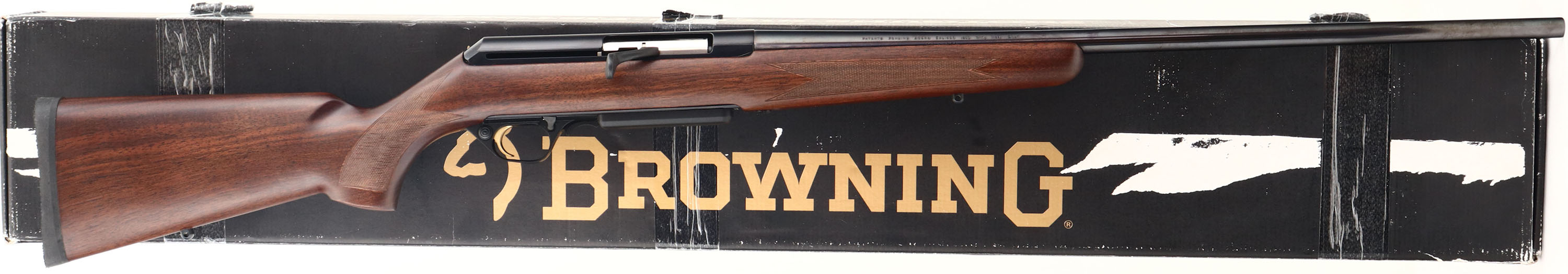 BOXED, Browning, Acera NS, CAL: 300 Win Mag, MFG: Modern, SN: 352MZ01011, Straight Pull Bolt Action Rifle, 24'' Barrel. The checkered flat pistol grip wood stock is excellent, basically mint. The metal blue finishes rate 99%+. No open sight provisions. Receiver is factory tapped & drilled for scope mounts. Buttstock carries a factory solid recoil pad. Gold trigger. Sling studs. Comes in original box, with owners manual & original packaging. A NIB rifle in a popular caliber. It is believed that only 600 of these were imported into the U.S. by Browning. FFL Req. - Value: 600 to 1200