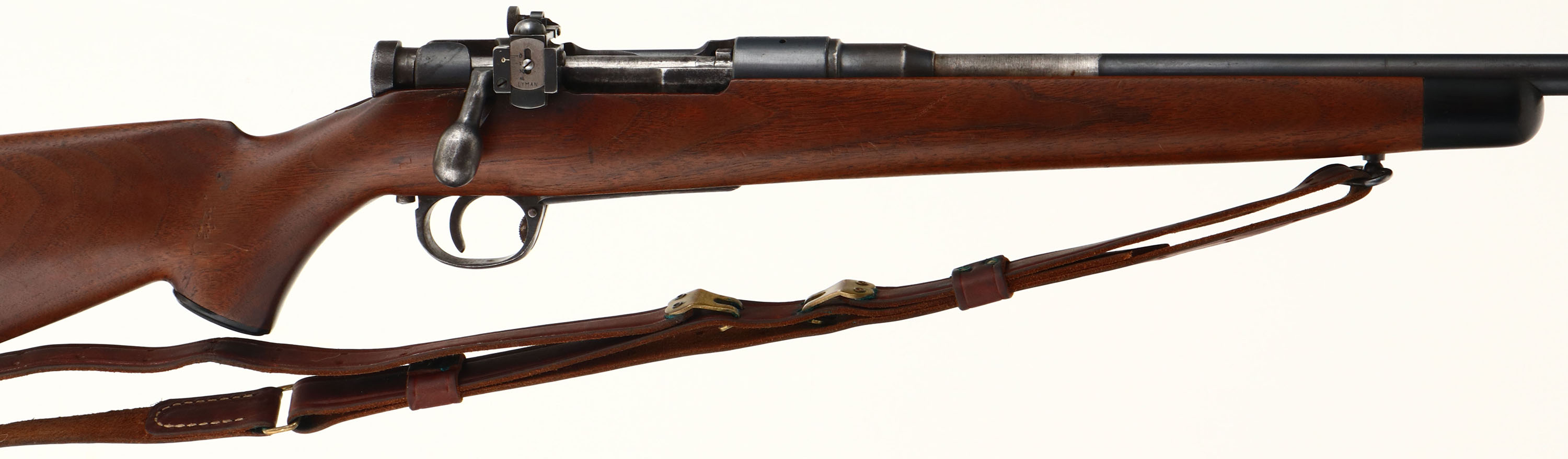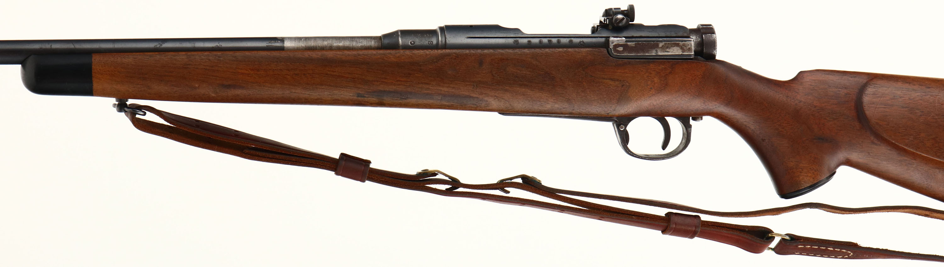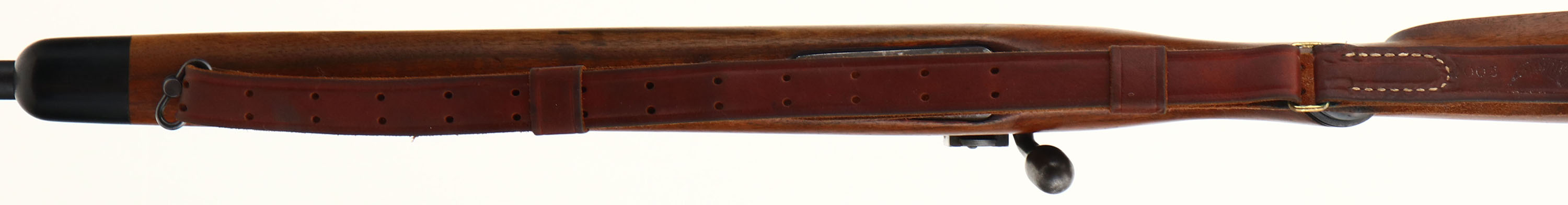 Japanese, Tokyo Arsenal, Sporterized Type 38, CAL: 308 WIN, MFG: 1906-32, SN: 31716, Bolt Action Rifle, 24'' step-down barrel. Top of receiver carries the Chrysanthemum flower seal. Left side of barrel stamped ''WIN 308''. The cheeked & capped pistol grip wood stock, with black forend tip is very good, displaying contusions, scratches, scrapes & dings. There's a small glued edge chip repair behind the bolt & the right side of stock has a 1/2'' natural knot. The metal finish has toned to a mix of metal gray, brown patina & remaining blue. Bore is good, clean & bright, but with spots of roughness between strong rifling. The receiver holds a Lyman 575ME side mounted peep sight, while the barrel has a ramped blade front sight. Buttstock carries a ventilated recoil pad with a small missing chunk at the toe. Sling swivels, with a Hunter 2001 leather sling. FFL or C&R Req. - Value: 200 to 400