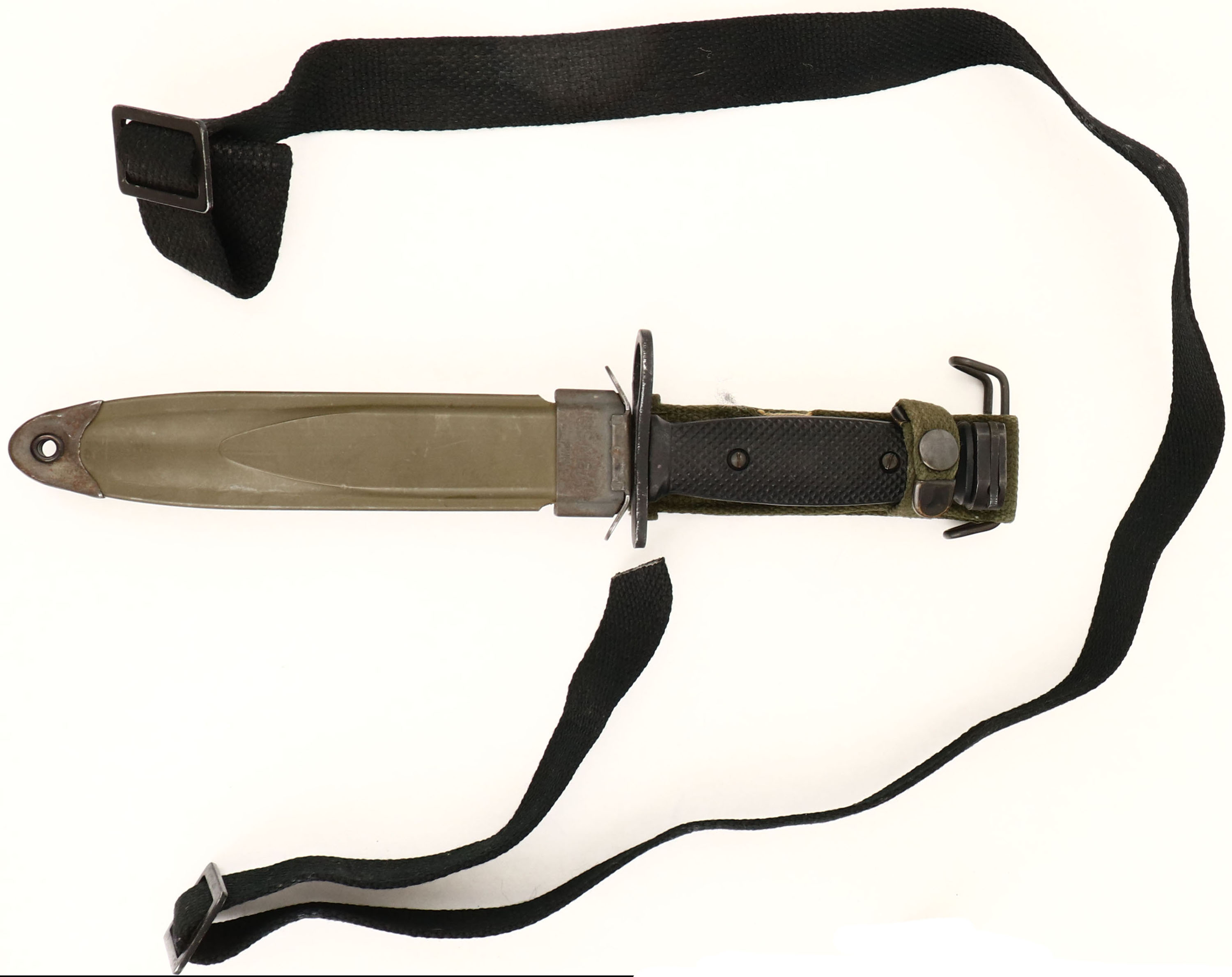 Colt, AR-15 SP1, CAL: .223, MFG: 1981, SN: SP129663, Semi Auto Rifle, 21'' barrel. The SP1 was Colts first commercial semi-auto version of the Military M-16, with distinctive triangular handguards. The synthetic fixed buttstock & forend are very good, displaying surface scuffs & light scrapes throughout from typical use. The flat military style metal finish on barrel & receiver rate at 85%, with light scuffs & scrapes. Bore is excellent & bright, with crisp rifling. The receiver carry handle/ rear sight fixture is mounted with a correct period, Japanese made, Colt marked, 3x20 scope. Rifle also carries the A1 sights. The barrel mounted with the pre-ban flash hider & bayonet lug, with the bayonet. Buttstock carries a black plastic buttplate, with integrated checkered metal trap door for cleaning kit. No magazine. Sling loops present & come with a black nylon sling. As an original Pre-ban Colt AR-15, this example is typically very desirable amongst Colt collectors & enthusiasts. FFL Req. - Value: 1500 to 3000