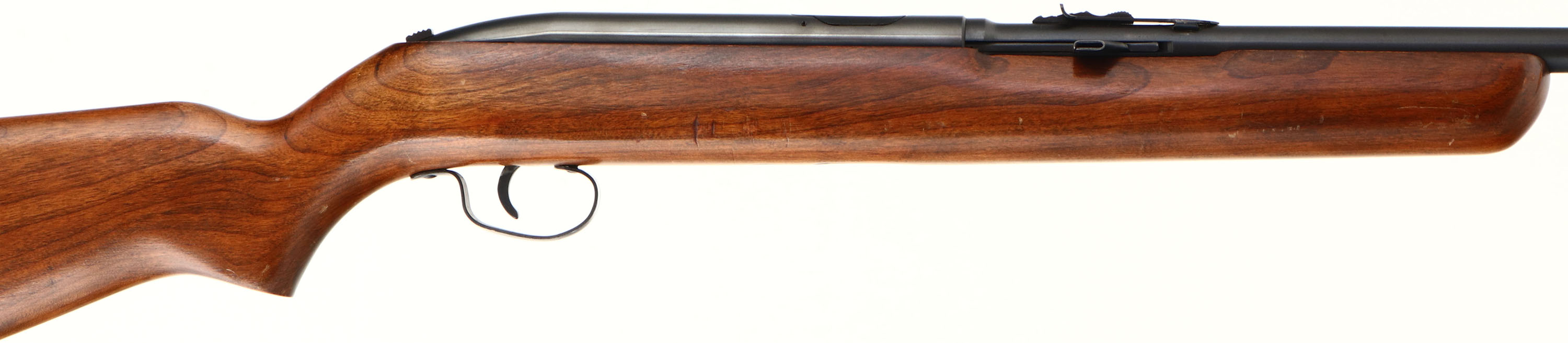 Winchester, Model 55, CAL: .22 S,L,LR, MFG: 1957-61, SN: None, Marketing as the Self Loading Single Shot Auto Ejecting Rifle, 21 3/4'' round barrel. The original flat pistol grip wood stock is excellent, displaying several minor finish level scuff & tiny contusions the original finish. The original metal blue finish is 97%, with minor blemishes. Bore is excellent. The barrel holds an adjustable rear sight & blade front sight. Stock carries a Winchester checkered buttplate. Only 45,000 produced. A very nice & fairly rare Winchester .22. FFL or C&R Req. - Value: 300 to 600