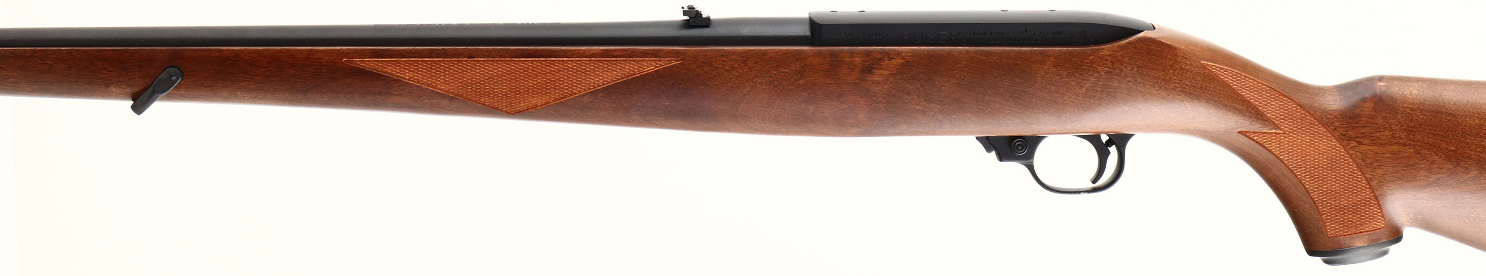 BOXED, Ruger, Model 10/22 Carbine, CAL: 22LR, MFG: 1995, SN: 241-95865, Semi Auto Rifle, 18 1/2'' barrel. The checkered, capped pistol grip full length wood stock is excellent. The metal blue finish on the barrel rates 99%+. The matte black finish on the receiver & trigger guard rates 99%+. Bore is excellent & bright, with crisp rifling. The barrel holds a standard folding leaf rear sight & blade front sight. Buttstock carries a Ruger solid black rubber recoil pad. Comes in original box, with owners manual. FFL Req. - Value: 300 to 600