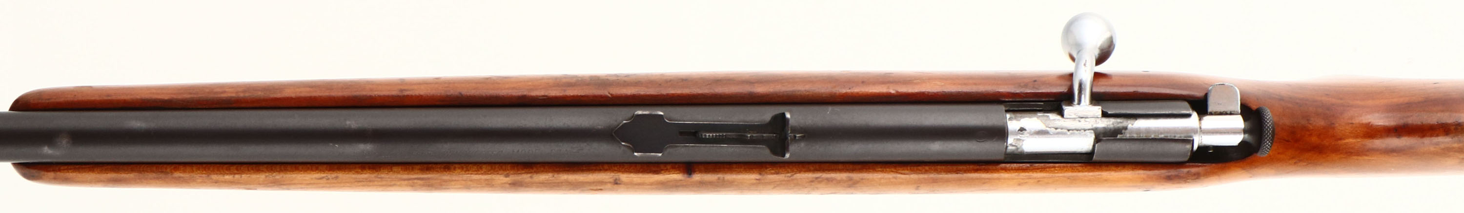 Winchester, Model 67A Sporting, CAL: 22 S.L. or LR, MFG: 1934-63, SN: N/A, Bolt Action Rifle, 27 1/8'' Tapered barrel. The flat pistol grip wood stock is very good, with an older refinish which now also displays numerous small scratches & contusions. The metal blue finish rates 60% overall, toning to a gray/brown. The barrel holds an adjustable rear & front blade sight. Bore is very good. Buttstock carries a Winchester checkered black plastic buttplate. Should be a good shooting vintage example. FFL or C&R Req. - Value: 200 to 400