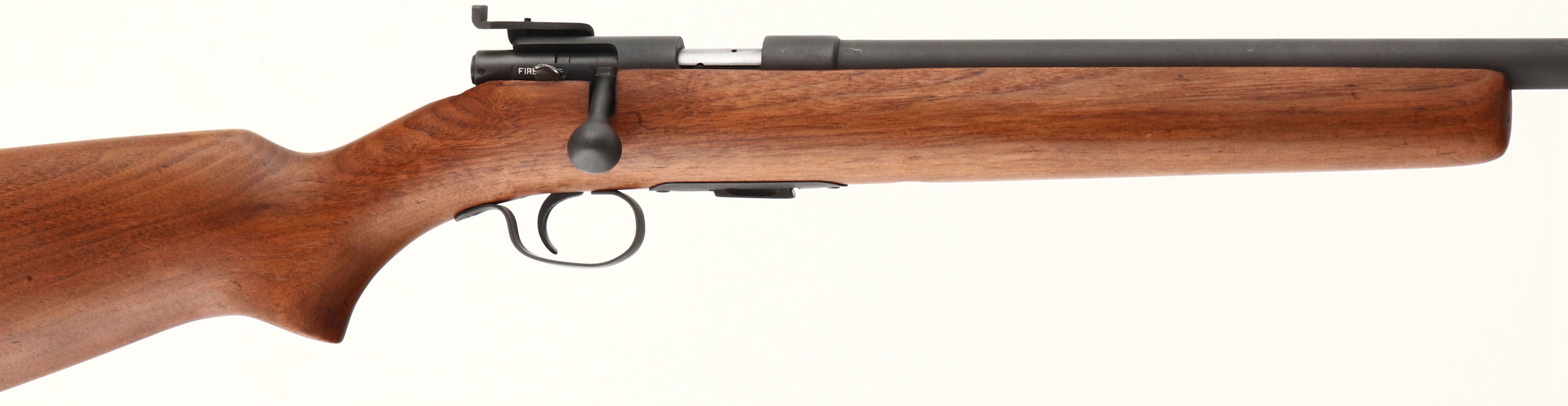Winchester, Model 69-A, CAL: 22 SHORT, LONG & LONG RIFLE, MFG: 1935-63, SN: N/A, Bolt Action Rifle, 25'' barrel. The original flat pistol grip wood stock is excellent & solid, having been lightly sanded & nicely refinished. There are several small scrapes, scratches & light contusions remaining. The wood has an overall excellent appearance. The metal has been refinished with a modern flat gray finish which is excellent. Bore is very good. The receiver holds a height adjustable dovetail sight, while the barrel holds an updated front blade sight. Buttstock carries a Winchester checkered black plastic buttplate, with a couple of small chips along the upper edge. Comes with a single shot dummy detachable mag. Excellent overall appearance. FFL or C&R Req. - Value: 200 to 400