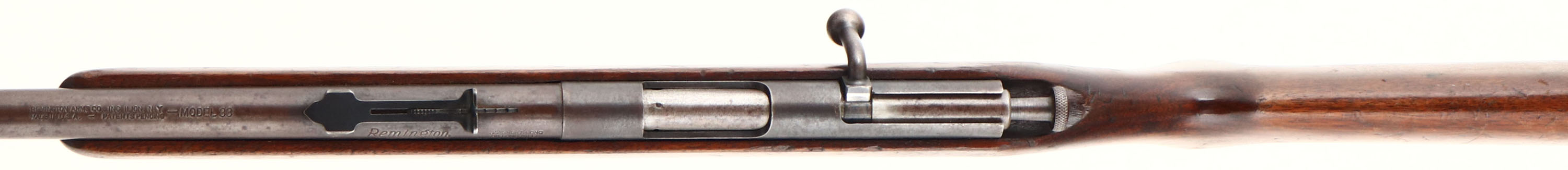 Remington, Model 33, CAL: 22 S,L,LR, MFG: 1931-35, SN: NONE, Bolt Action Rifle, 23'' barrel. The original flat pistol grip stock is good, displaying contusions, scratches, & scrapes. The finish has areas of thinning & crinkling The metal finish has toned to a brown patina, with gun metal gray undertones where wearing thin & spotting throughout. Bore is excellent. The barrel holds an adjustable rear sight & blade front sight. Stock carries a smooth metal buttplate. FFL or C&R Req. - Value: 100 to 300