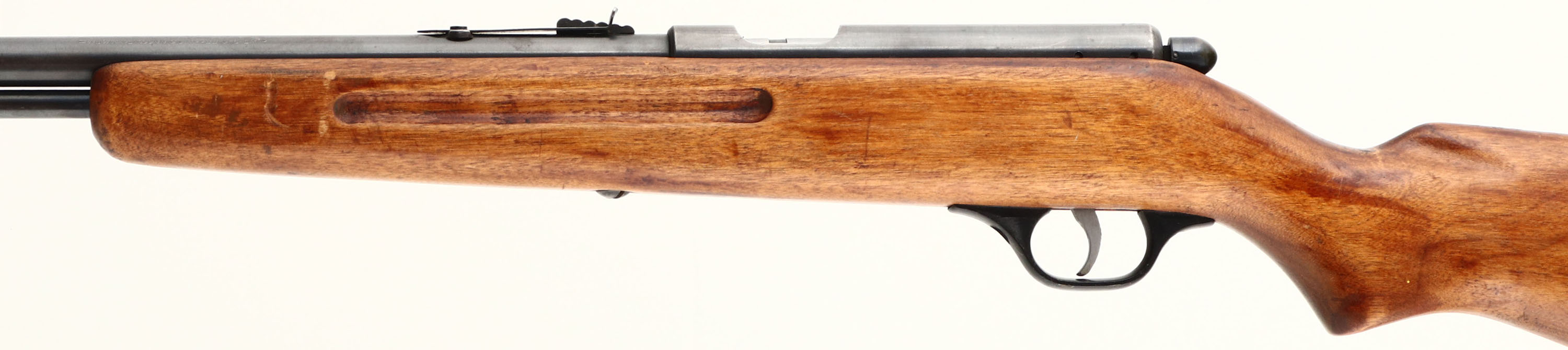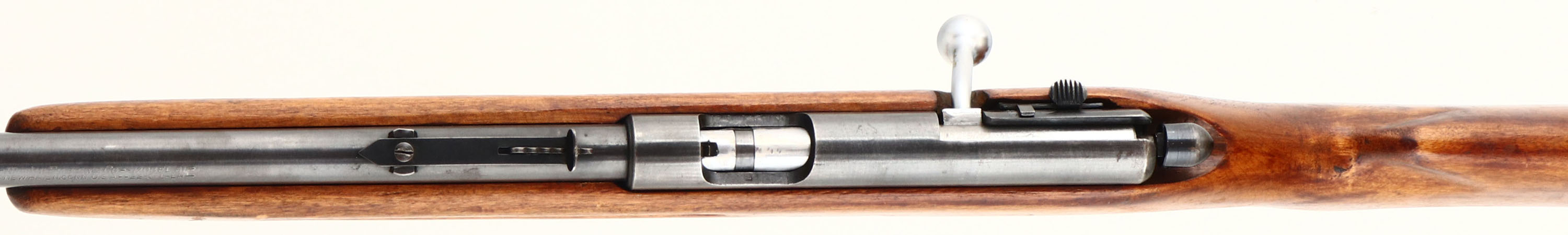 Marlin, Model 81, .22 S, L, LR Cal., MFG. 1937-39, SN: NONE, Bolt Action Rifle, 24'' Round tapered barrel, Full mag tube, The flat pistol grip wood stock, with finger grooved forend is very good & solid. The stock has been lightly sanded in areas & has an added layer of finish over the remains of the original finish. The finishes show thinning, along with small scrapes, contusions & scratches. Metal blue is 85% overall. Bore is excellent. Original buttplate. The barrel carries original rear & front sights. Trademark bullseye in stock. FFL or C&R Req. - Value: 150 to 250