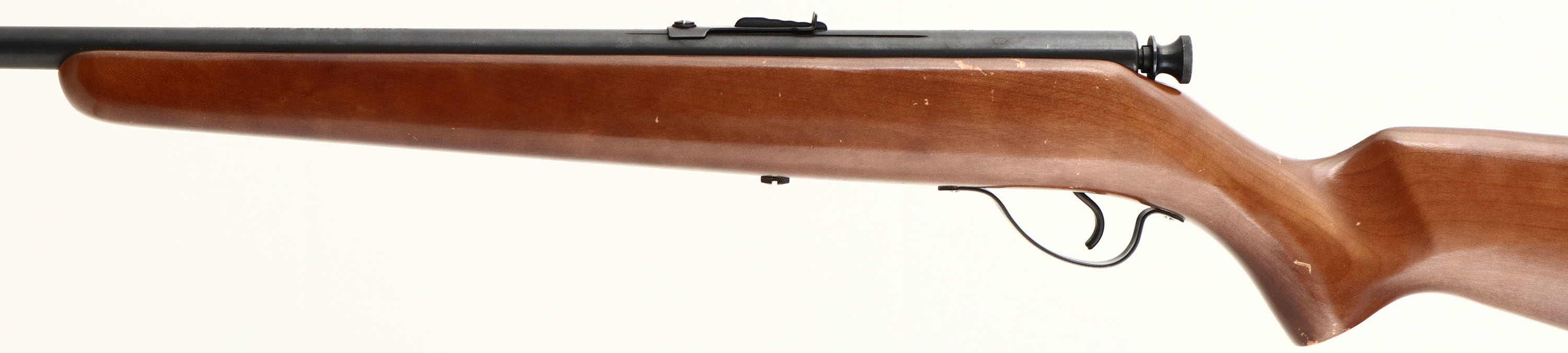 Savage, Model 521 Hiawatha, Series A, .22 S, L, LR Cal., MFG. 1960's-80's, SN: P739098, Bolt Action Rifle, 24'' Round tapered barrel, Full mag tube, The flat pistol grip wood stock is excellent, with the original finish. The finish shows small scrapes & a set of larger concussions/scratches at the lower right portion of the stock. Metal blue is 98% overall. Bore is excellent. Original buttplate. The barrel carries original rear & front sights. FFL Req. - Value: 150 to 300