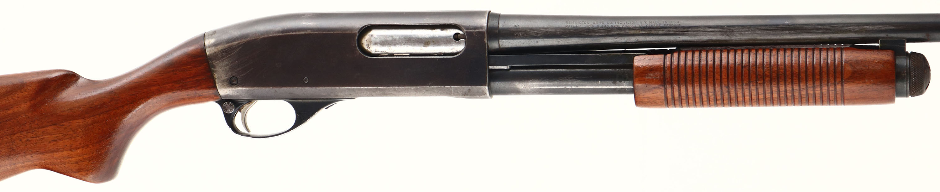 Remington, Model 870 Wingmaster, CAL: 16 GA, MFG: 1957, SN: 556472W, Pump Action Shotgun, Choke: MOD, 28'' barrel. The refinished flat pistol grip wood stocks are very good, displaying light scrapes to the finish. The metal blue finish rates 50%, 40% on the receiver, with areas worn to gun metal gray & starting to tone to a brown patina. Bore is very good. The barrel holds a single front bead. Stock carries a ventilated recoil pad. FFL or C&R Req. - Value: 150 to 300