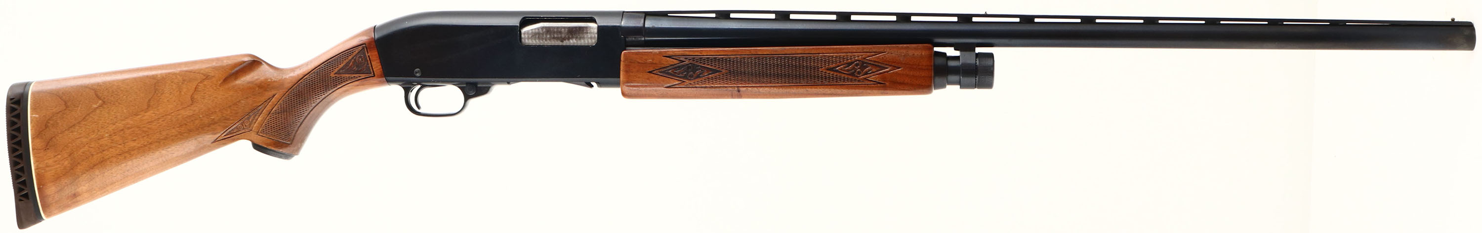 Ted Williams, Model 200, CAL: 12GA, MFG: 1964-81, SN: P311388, Pump Action Shotgun, 28'' barrel. The checkered & capped pistol grip stocks are very good, displaying minor contusions, scrapes & dings to the original finish. The metal blue finish on the barrel rates 98%, while the anodized metal finish on the receiver rates 97%, with minor blemishes. Bore is excellent, with light striations from use. The ventilated rib holds a small silver mid-rib bead & front bead. Buttstock carries a ventilated recoil pad. FFL Req. - Value: 200 to 400