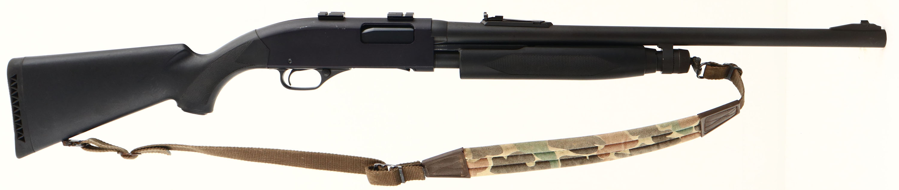 Winchester, Model 1300 Slug Gun, CAL: 12 GA SLUG, MFG: 1978-2006, SN: L3416595, Pump Action Shotgun, 22'' barrel. The checkered, capped pistol grip synthetic stocks are excellent, displaying a couple of minor scratches & dings. The matte black metal finishes rates 95% overall. Bore is excellent. The barrel holds an adjustable rear sight & ramped blade front sight The receiver holds a set of scope mounts. Buttstock carries a Winchester, ventilated recoil pad. Sling studs, with a camo cloth sling. FFL Req. - Value: 300 to 500