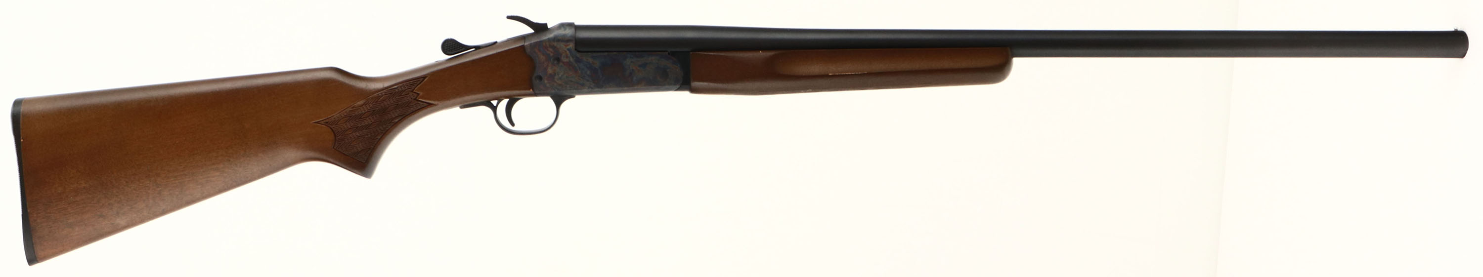 Savage, Stevens Model 94 Series N, CAL: 12GA, MFG: 1939-61, SN: C722656, Break Action Single Shot Shotgun, 28'' barrel. The press checkered flat pistol grip wood stock is excellent, displaying minor scrapes & dings. The metal blue finish on the barrel rates 98% overall, with a small area of spotting & other blemishes. The receiver is case-colored, retaining full tones. Bore is excellent & bright. The barrel holds a single front bead. Buttstock carries a grooved plastic buttplate. FFL or C&R Req. - Value: 100 to 250