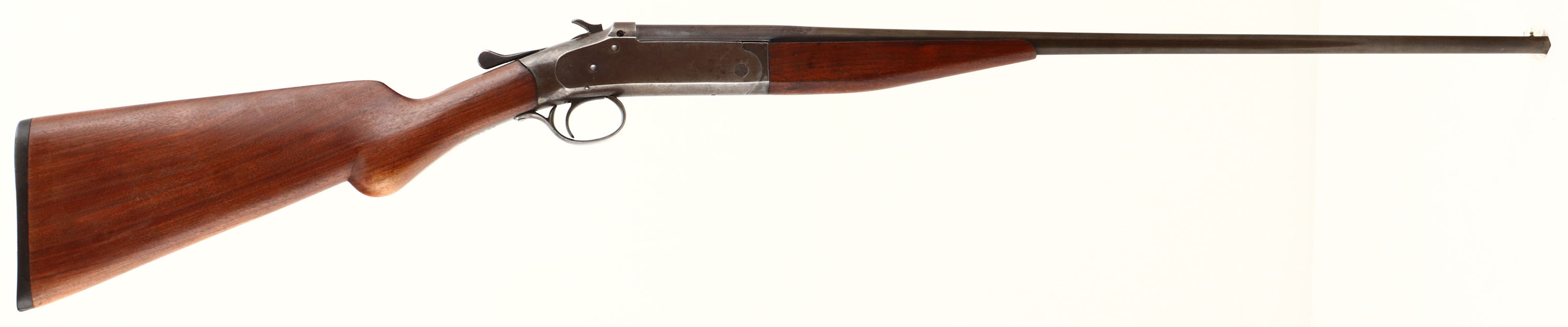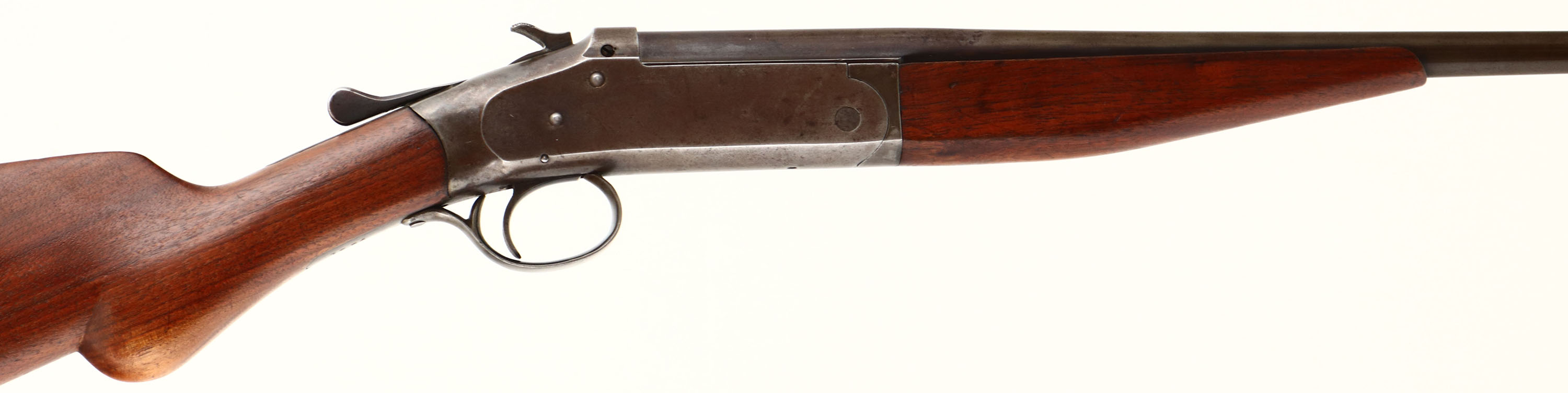 Iver Johnson, Model ''Champion'', CAL: .44 SHOT, MFG: 1911-15, SN: 7831, Break Action Single Shot Shotgun, 26'' barrel. The refinished round knob pistol grip wood stock appears very good & solid, despite a glued tight large repair at the wrist, along with other small contusions, scrapes & dings. The metal finish on the barrel has worn to gun metal gray & having a thin brown patina. The receiver is case-hardened, displaying remnants of case-coloring. Bore is good, with spotting & light pitting near the breech end. The barrel carries a single front bead. Buttstock carries a I.J. grooved black plastic buttplate. FFL or C&R Req. - Value: 100 to 300