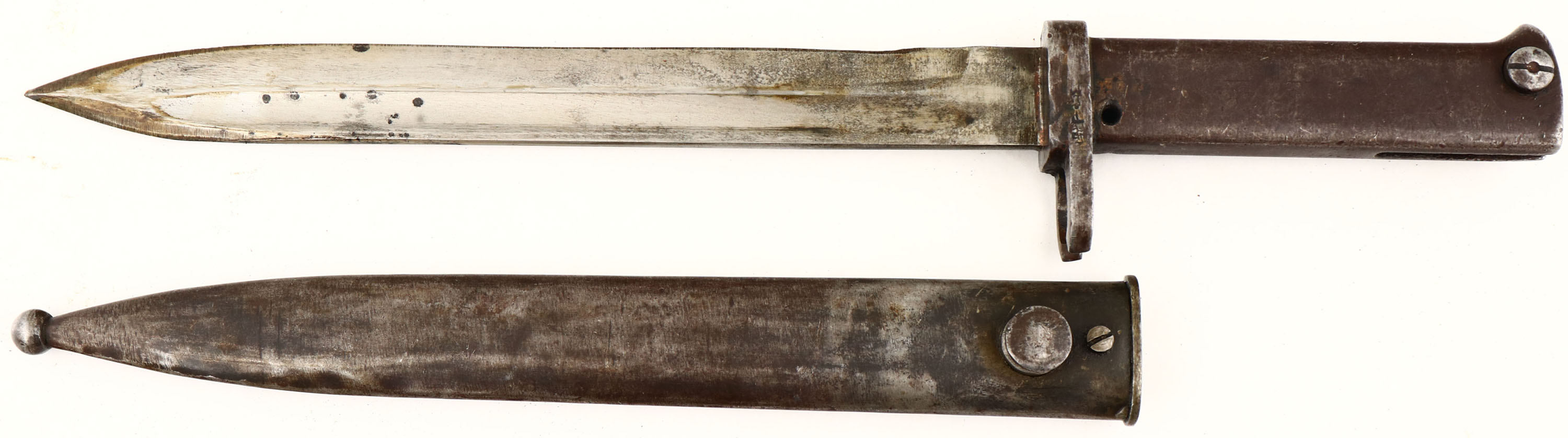 Danzig. Model: 88/05. Cal: 7.92x57mm. MFG: 1891. S/N: 71851. Bolt Action Rifle. 29 1/4'' Barrel. The straight wrist wooden stock is very good with scratches/dents & wear from use & age, Stock appears to have been lightly sanded & re-finished, worn cartouches on bottom of stock by wrist that reads, crown over ''B'', ''X6''. The metal finish rates 90% on barrel with spots of brown patina & lightly thinned bluing, Receiver was left in the white (Not Blued) From factory. Left side of receiver is marked with S/N, ''GEW.88'', top of receiver is marked with Crown, ''S'', ''DANZIG'', ''1891'' & proof marks, Left side of barrel is marked with S/N, ''8MM''. Bore is very good with light roughness. Barleycorn front sight, V-notch ladder rear sight that's marked in Turkish. Metal buttplate worn to a gun metal gray. Bottom sling swivels, has cleaning rod, comes with bayonet & sheath. A excellent example of Germanys first smokeless powder rifle. Antique No FFL Req. - Value: 300 to 600