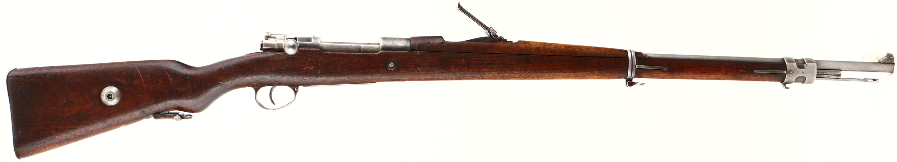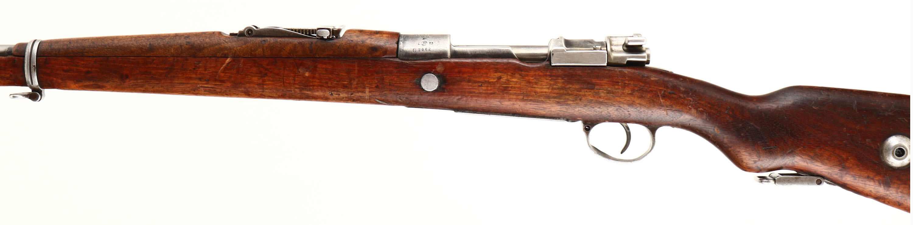 Zbrojovka Brno. Model VZ 98/22. Cal: 7.92x57mm, MFG: 1922-24. S/N: C3062. Bolt Action Rifle. 28 5/8'' Barrel. The Semi Pistol grip wooden stock is very good with scratches, chips, dents, gouges, vice marks & wear from use/age, Bolt disassembly disc in stock. The metal finish rates 30 % on receiver with spots worn to a gunmetal gray, The metal finish rates 10% on barrel with spots worn to a gun metal gray. Left side of receiver is marked with proof marks, ''23'' & S/N, top of receiver is marked ''CS.ST.'', ''ZBROJOVKA'', ''BRNO'', end of barrel is stamped with importer marks. Bore is very good, bright with some light roughness. Barleycorn front sight, V-notch tangent rear sight marked in Turkish. Metal buttplate that's worn mostly gray with spots of rust & is proud to wood is spots. Bottom sling swivels, has cleaning rod & comes with bayonet. A good 8mm Mauser shooter. FFL Or C&R Req. - Value: 200 to 400