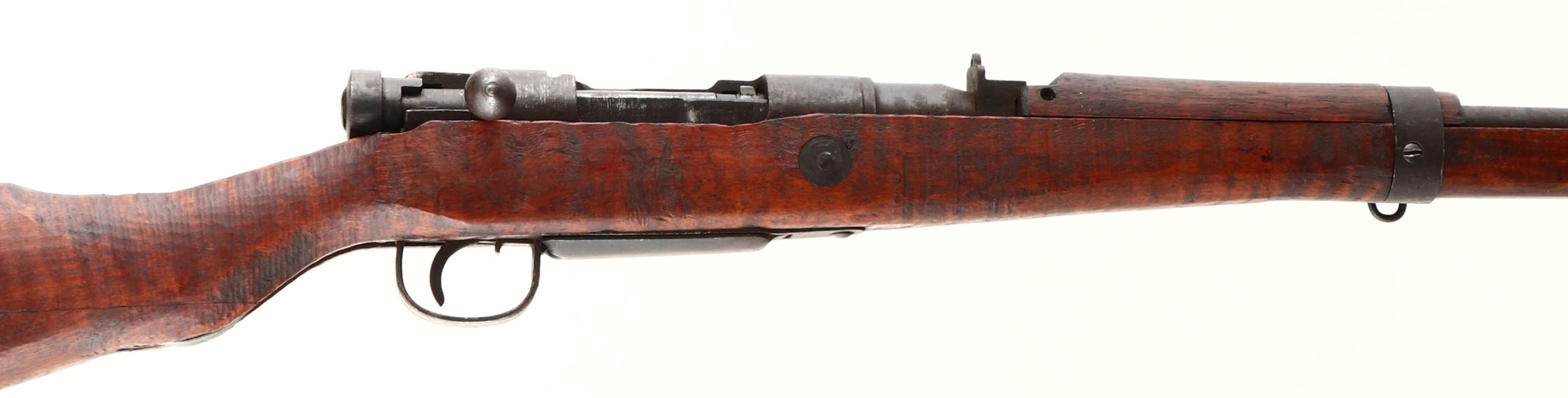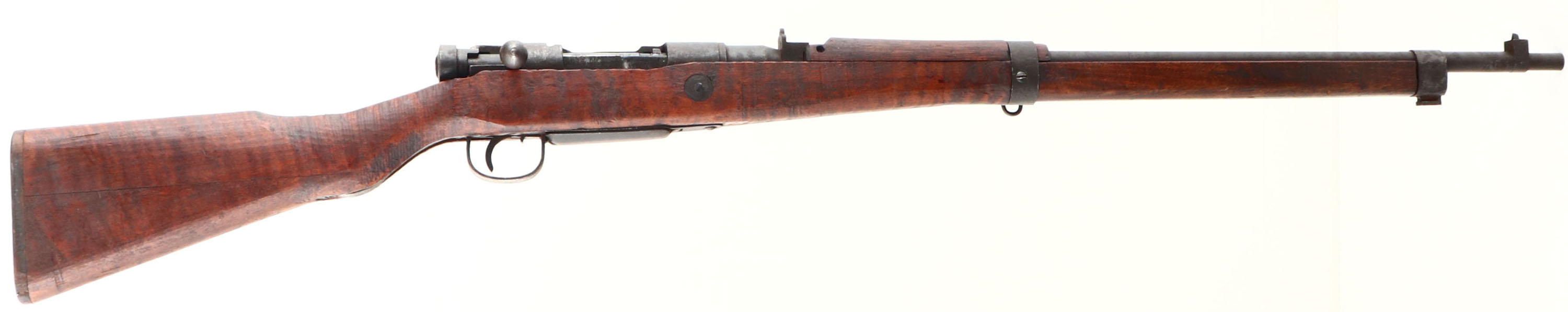 Kokura Arsenal. Model: Type 99. Cal: 7.7 Jap. MFG: 1939-1945. S/N: 65576. Bolt Action Rifle. 25'' Barrel. The semi pistol grip wood stock is very good with scratches, dents, gouges & wear from use/age. The metal finish rates 60% overall with spots of patina & gray. Left side of receiver is marked with S/N, arsenal stamp, top of receiver is marked with Intact chrysanthemum, S/N matched with bolt. Bore is very good with some light roughness in spots, bright with crisp rifling. Barleycorn front sight, fixed aperture rear sight. Wooden buttplate held in with three nails. Side sling swivels. This is a perfect example of a last ditch type 99 with the Rare Intact chrysanthemum! FFL Or C&R Req. - Value: 150 to 300