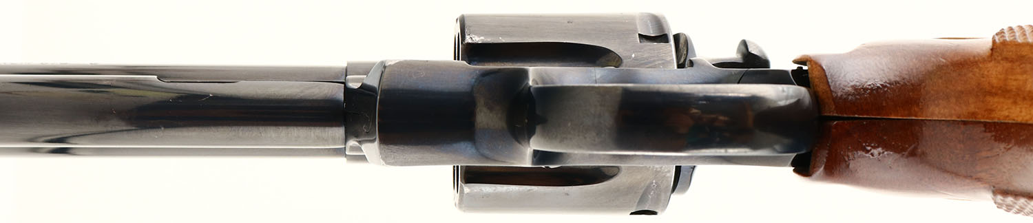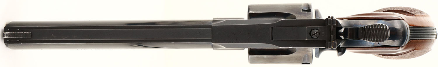 Colt, Python, CAL: 357, MFG: 1975, SN: E94621, Double Action Revolver, 6'' barrel. The original Rampant Colt medallion checkered wood grips are excellent, displaying minor dings & handling marks. The metal blue finish rates 97% overall, with loss due to holster wear near the muzzle & other small scuffs. Bore is excellent, with very light wear from honest use. The ventilated rib holds a blade front sight & the frame holds an adjustable rear sight. A highly desirable revolver. FFL Req. - Value: 2000 to 3000