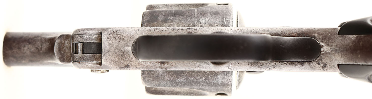 Smith & Wesson, Model Safety Hammerless 4th model (Lemon Squeezer), .38 S&W Cal., Double Action Revolver, Mfg. 1898-1907, SN: 187534, Rare Special Order 2'' barrel, Comes with an additional 4'' barrel & cylinder. Original checkered hard rubber grips are very good, but with worn checkering, mostly smooth on right side. Metal finish is worn gun metal gray, with some brown patina & spotty areas of cleaned rust pitting. Bores are good. Integrated rear & blade front sight. FFL & C&R Req. - Value: 200 to 400