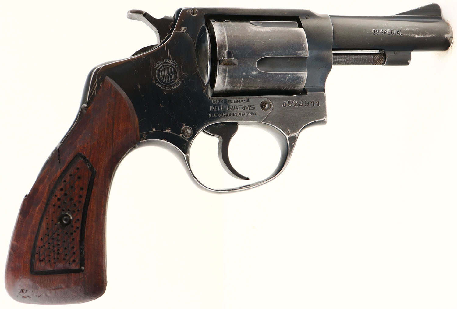 Rossi - Interarms, Model 68, CAL: 38 SPL, MFG: 1978-85, SN: D523911, Double Action Revolver, 3'' barrel. The non-professionally hand carved wood grips are good & solid, but have the carving marks & a couple of small hairline cracks. The metal blue finish rates 70% overall, with most of the loss on the cylinder. Bore is very good & bright. Factory sights. Appears to function properly. FFL Req - Value: 100 to 300