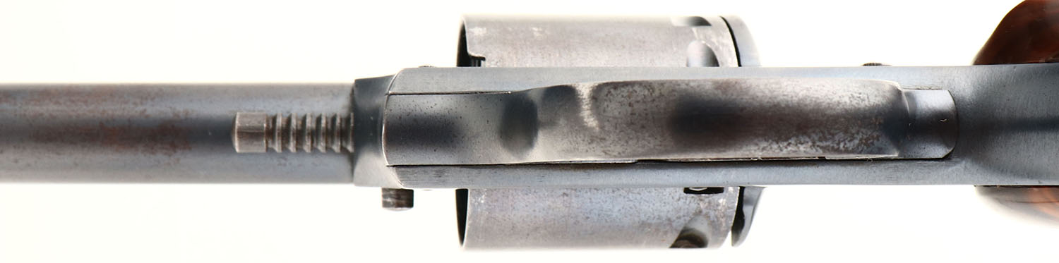 BOXED, Iver Johnson Arms & Cycle Works Model 55 Target, CAL: 22, MFG: 1955, SN: H447, Double Action Revolver. The original checkered plastic, wood appearance, grips are excellent. The metal blue finish is 90% overall, with nice case-colors to hammer & trigger. Bore is very good. Factory sights. Action & cylinder timing appear to function correctly. Comes in the original factory light gray leatherette case, which is in great condition, with gold lettering on top & brochure inside. FFL or C&R Req. - Value: 300 to 600